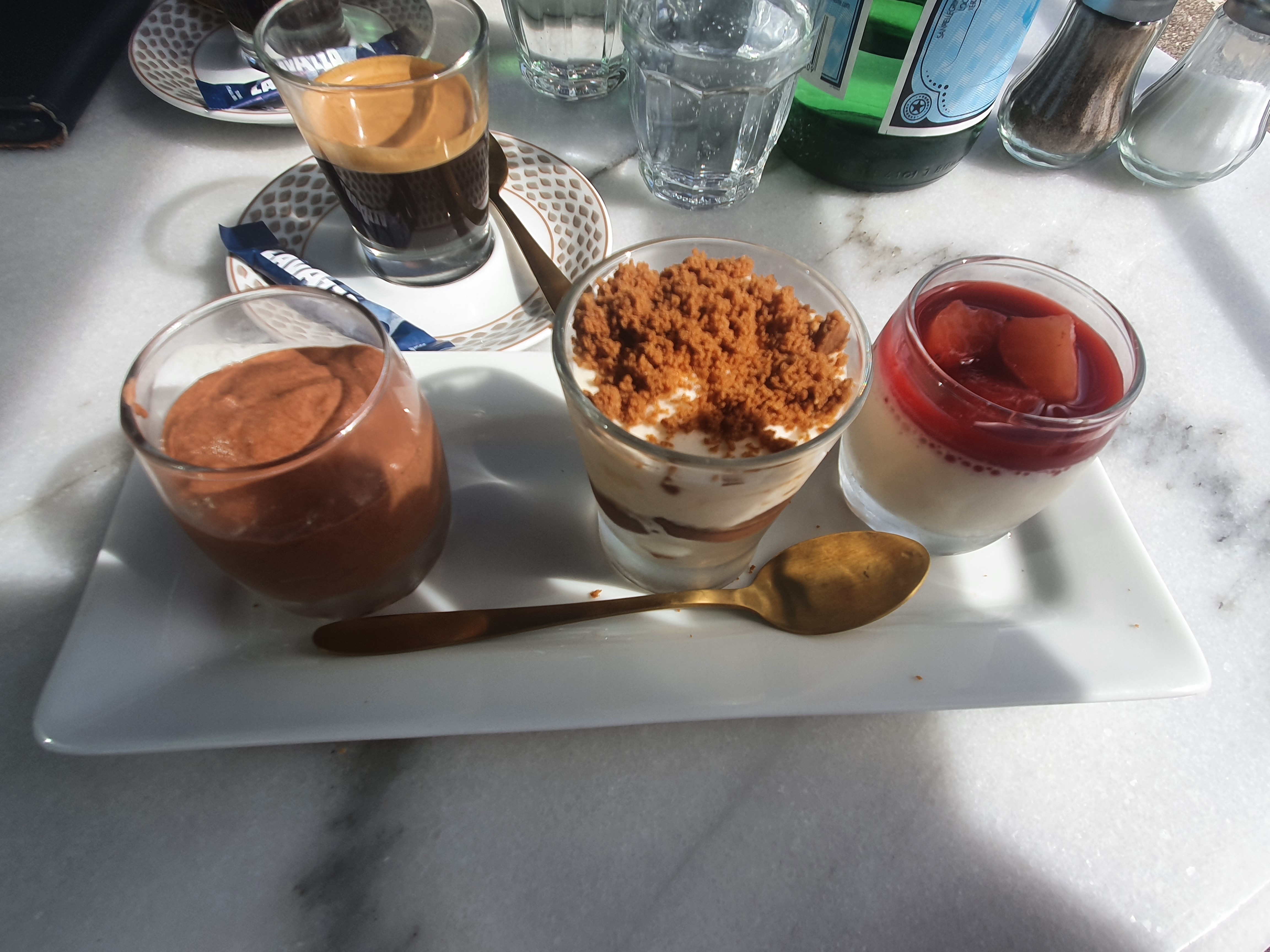 Nous sommes arrivés, à deux, un peu tardivement pour de la restauration (14h-15h). La patronne nous a précisé que la cuisine avait fermé pour le chaud et que tout ce qui était apéritif, salade et dessert étaient au menu. Nous nous sommes laissés tentés par les bouddhas bowl étaient garnis, variés et bien assaisonnés ! La serveuse était aussi au top et souriante. Petite mention pour le café gourmand pour le coup très goûtu et belle quantité ! Super expérience, avec en prime une belle place en terrasse au soleil 🤓😁.
