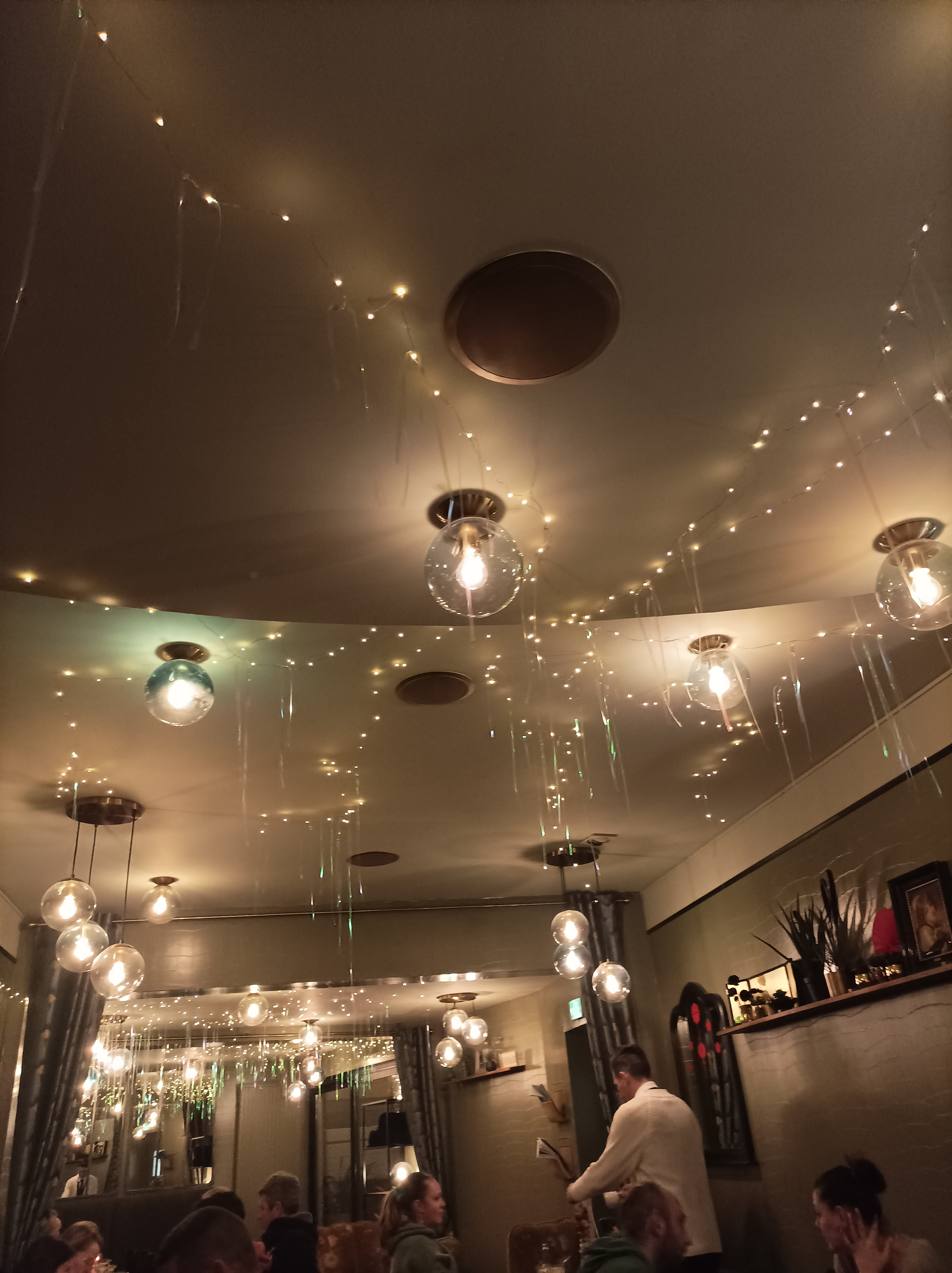 2 cocktails et 2 desserts en fin de soirée. Très beau décor et super accueil ! Personnel sympathique et très souriant. Le tiramisu et la crème brûlée étaient parfaits ! Nous avons passé un très bon moment.