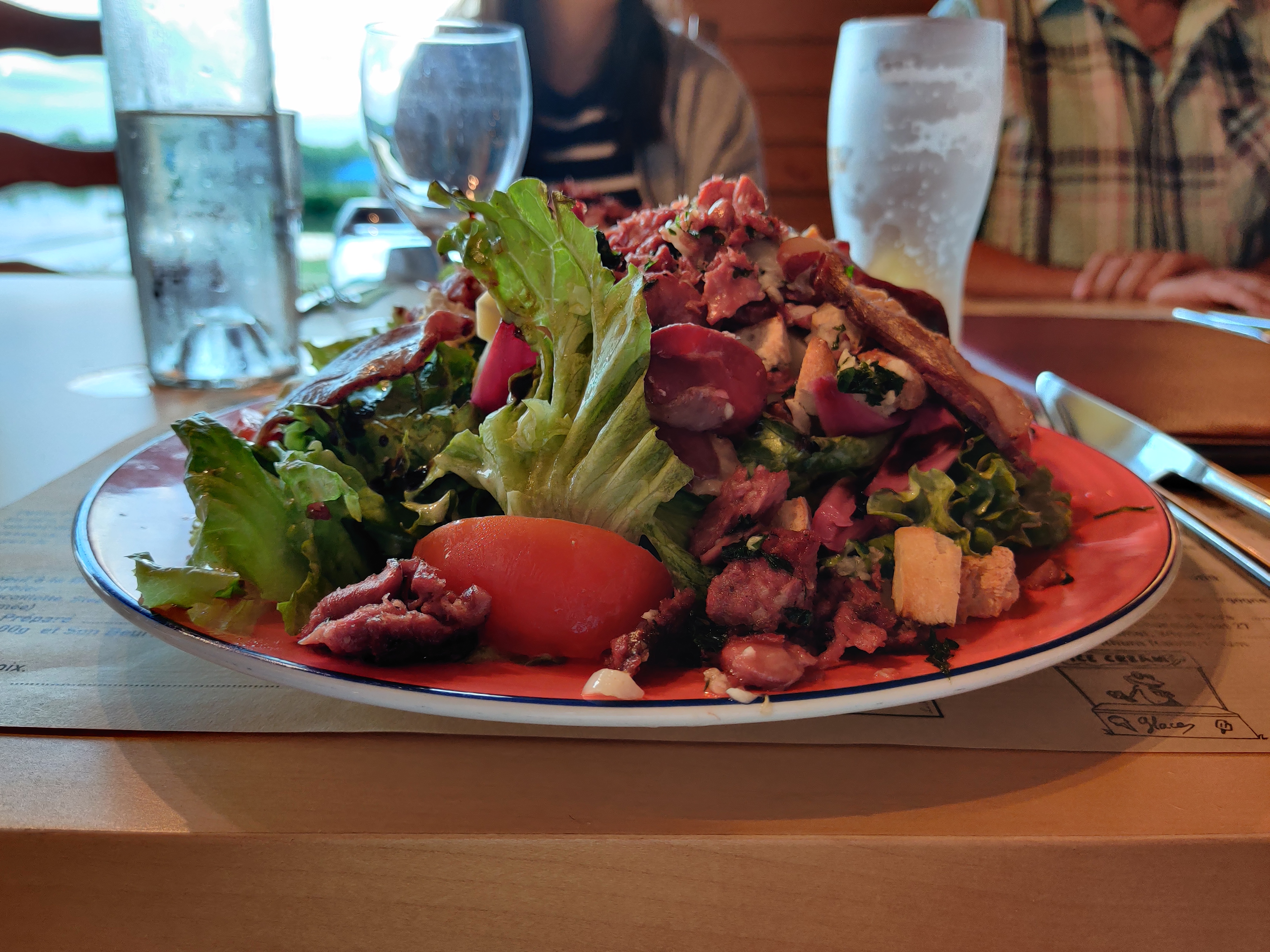Service super agréable sur une terrasse au bord du lac! 300gr de boeuf super bon pour bien moins cher que en ville!
