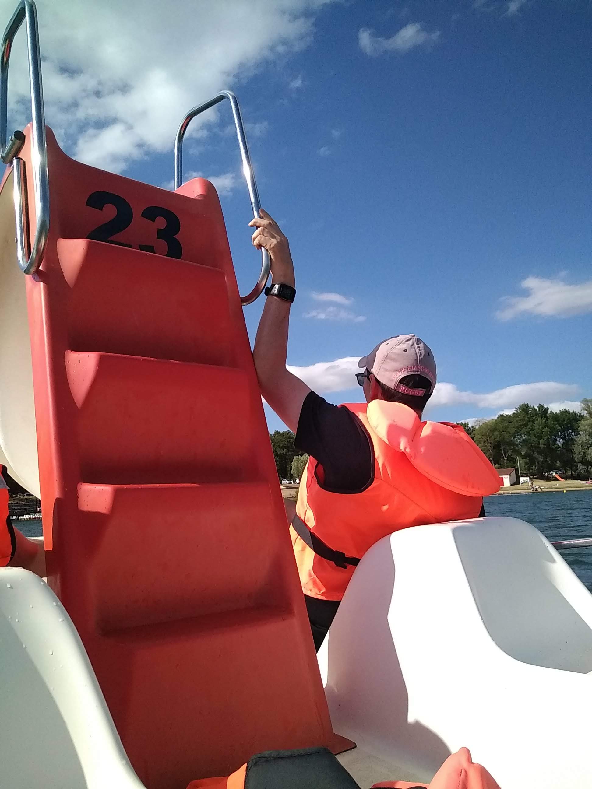 Super après-midi avec mes adolescents : pique-nique sur table et à l'ombre, baignades, pédalo avec toboggan et paddle... Tout ce qu'il faut pour passer un super moment en famille !