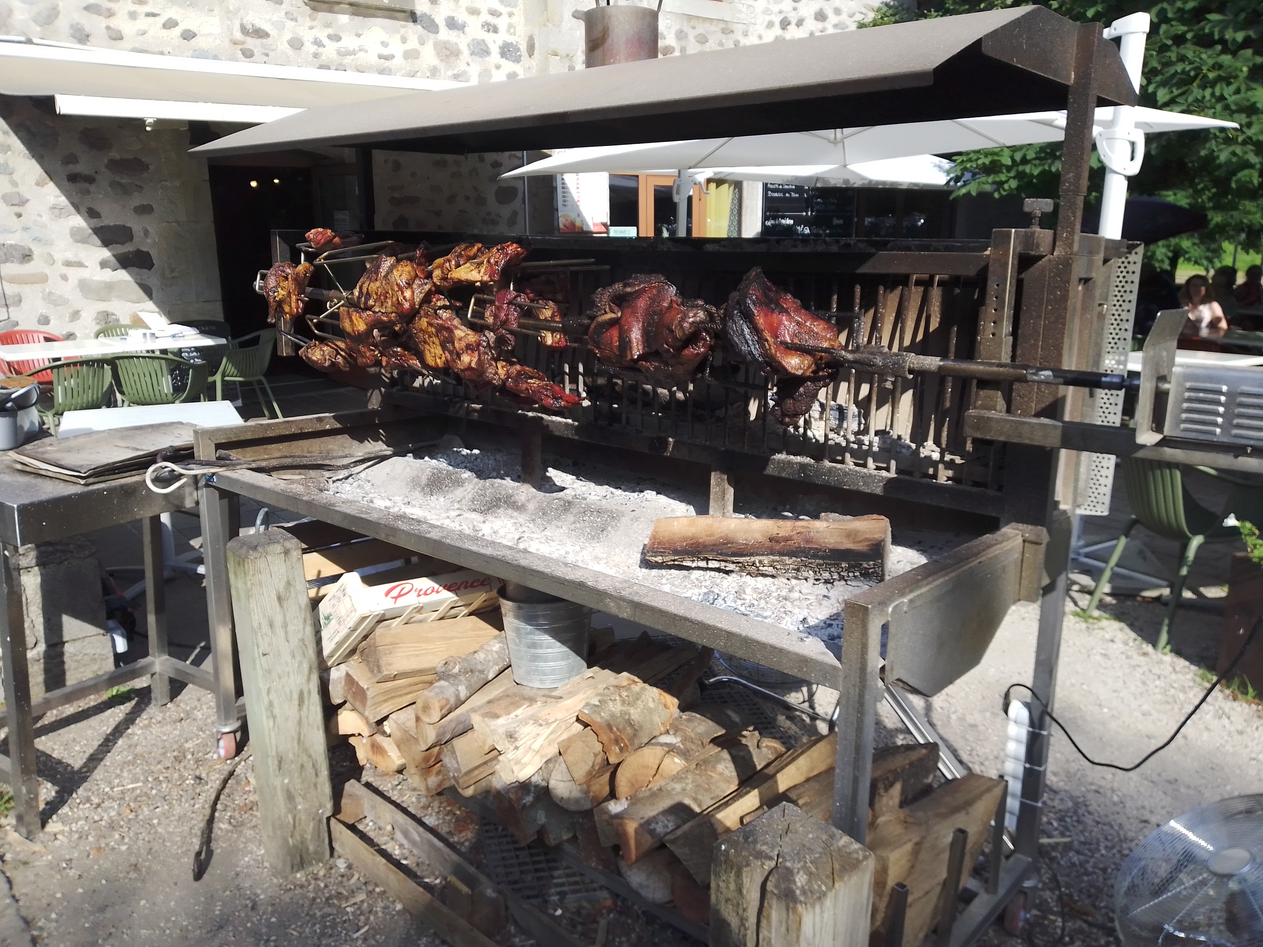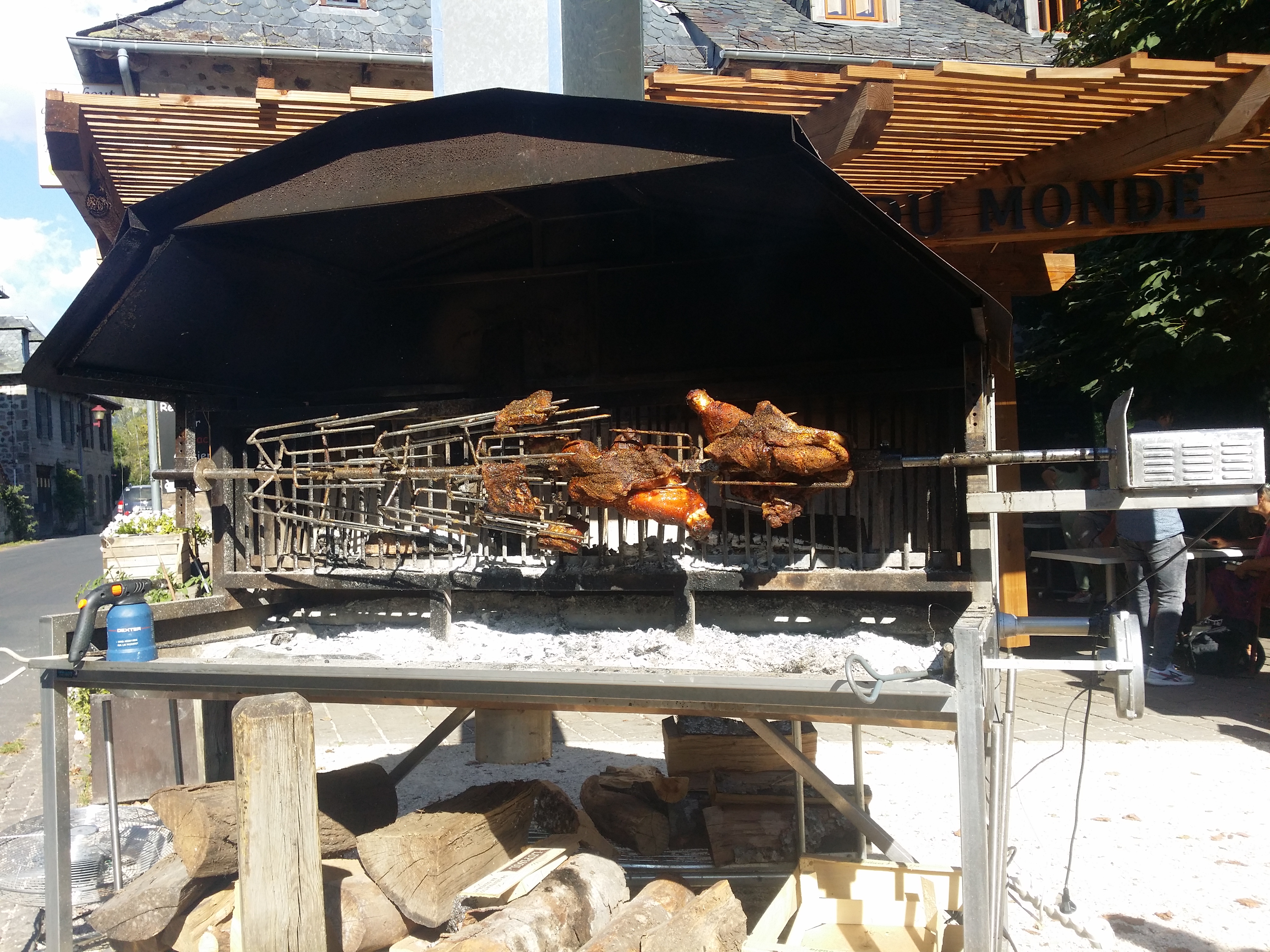 Le feu mis en route durant la matinée, la cuisson des jarrets, cuisses de porc, des coquelets sur la journée invitent à venir déguster ces produits produits localement et avec soins. Le porc accompagné de la superbe truffade et d'une bonne salade, ce fut un régal. Les desserts sont delicieux. Nous recommandons ce restaurant pour son accueil, la qualité de ses produits, son savoir faire.
