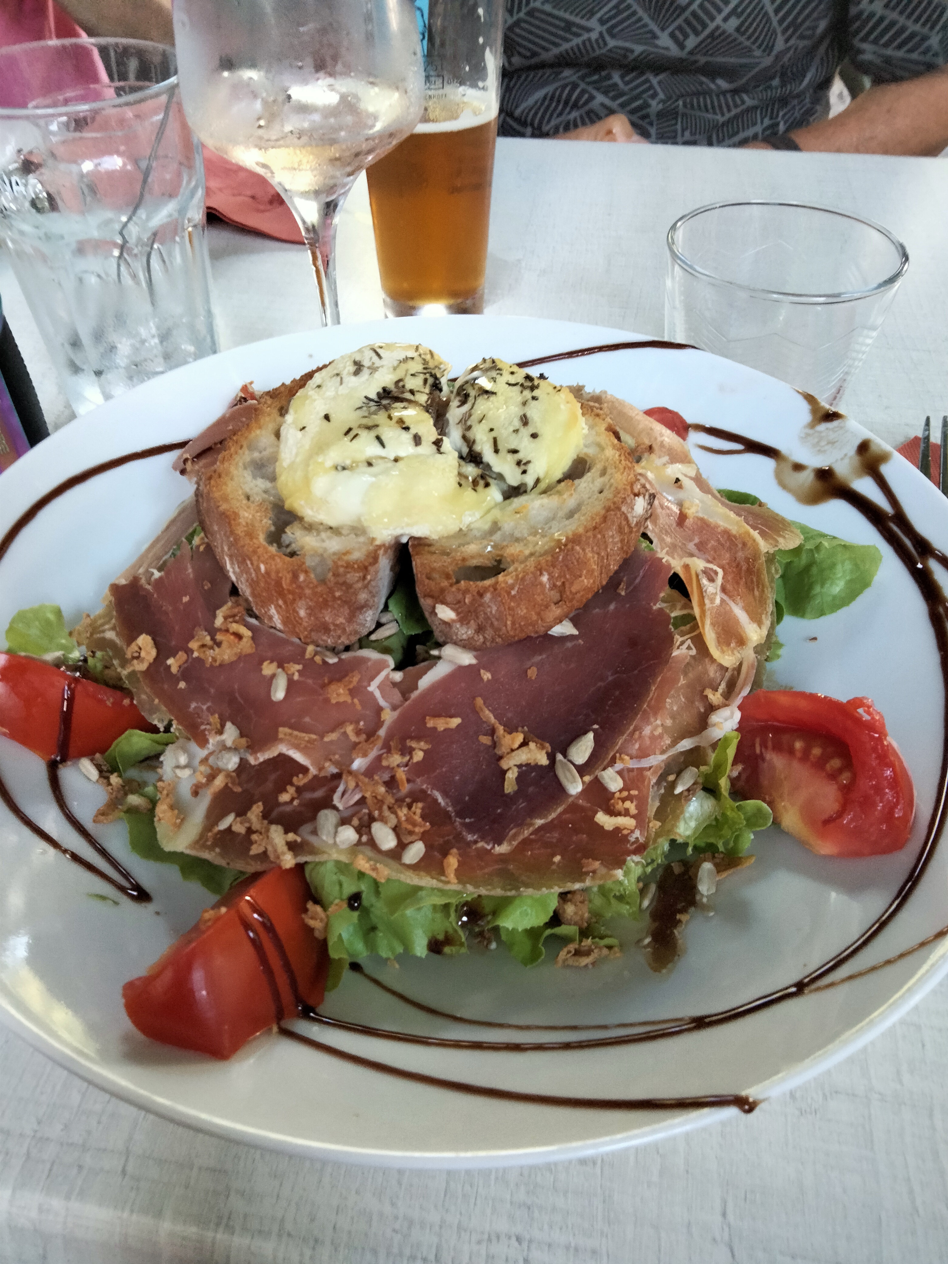 Plats copieux, en terrasse. Le jambon cru est particulièrement savoureux: peu salé, très fin...