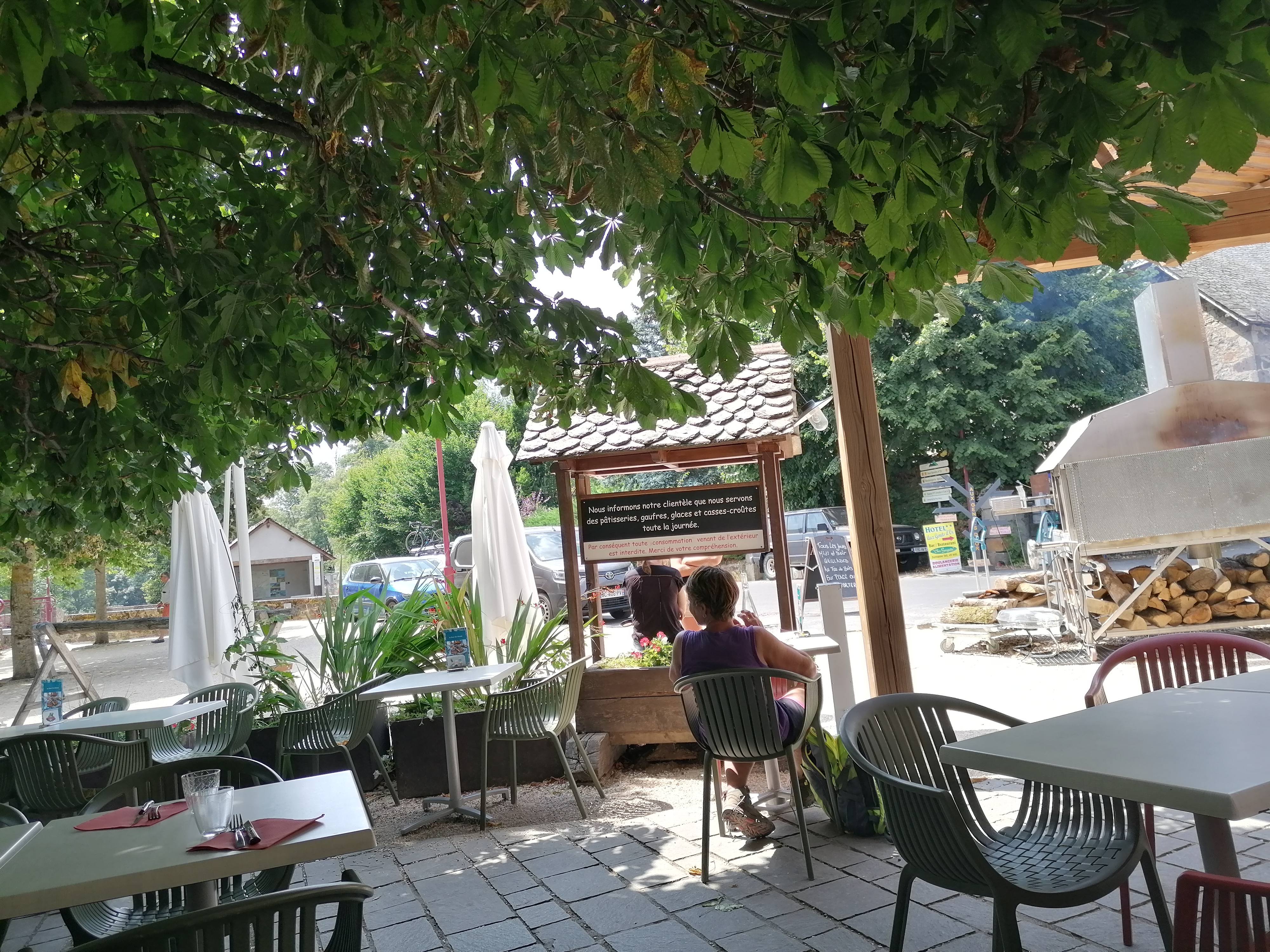 Des produits locaux de qualité, du pain paysan délicieusement croustillant et un service sympathique et efficace. Le tout a l'ombre d'un superbe marronnier au bord du cours d'eau qui 'ous bercé de son doux refrain...