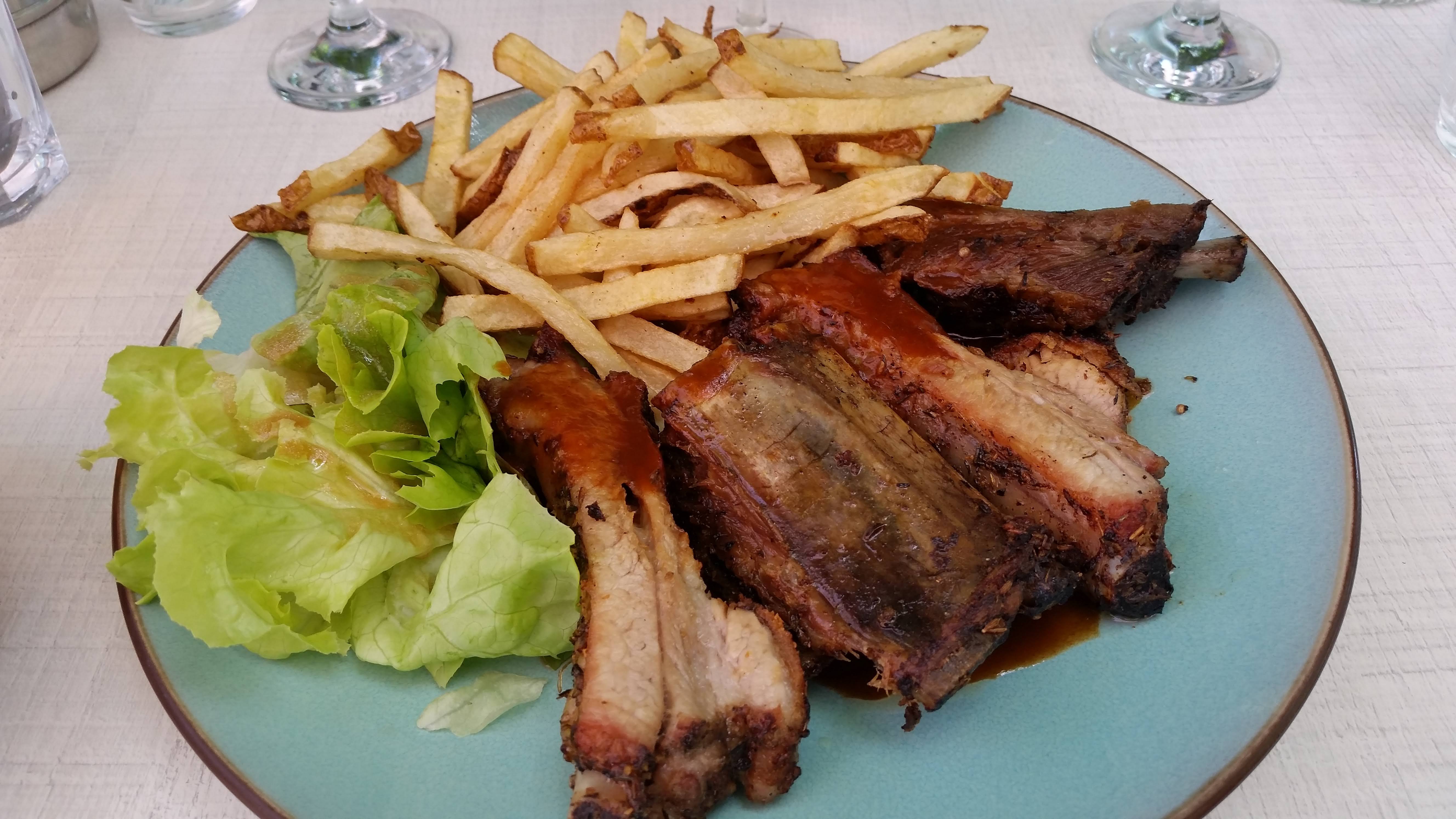 Une terrasse ombragée, un barbecue en plein air, c’était plein de promesses. Hélas, c’était un piège à truffes : ribs recuites au four, portions congrues et notes Salers. Accueil glacial de la gérante, gérant rugueux qui parade. Il flotte dans cet établissement quelque chose de tendu et de présomptueux