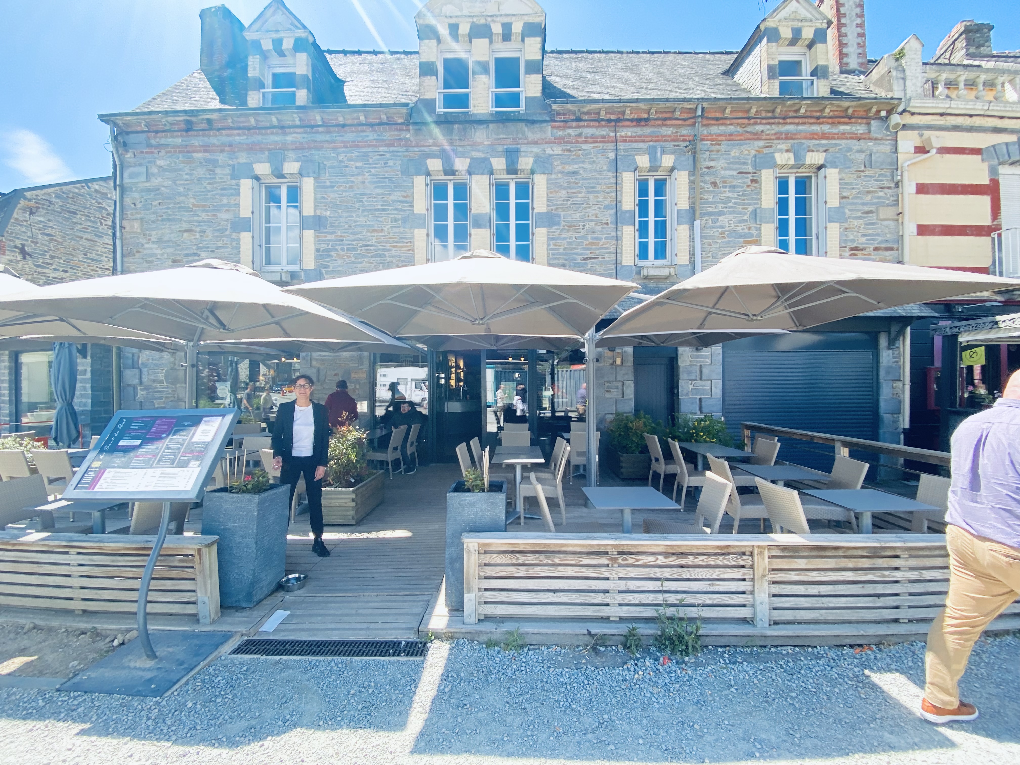 Arrêté ici pour un rafraîchissement lors d'une promenade dans le village (uniquement Breizh Cola & Cidre Breton bien sûr !) L'emplacement est excellent et l'endroit est joliment aménagé. Les sièges extérieurs sont largement recouverts en cas de douche. La serveuse était exceptionnellement arrangeante et sympathique, nous a fait sentir bien accueillis et détendus, a été patiente avec notre français inégal, a comblé les lacunes avec son bon anglais et nous a aidés à apprendre quelques mots de français supplémentaires. Heureux d'avoir suivi cette recommandation et heureux de la transmettre, alors arrêtez-vous ici !