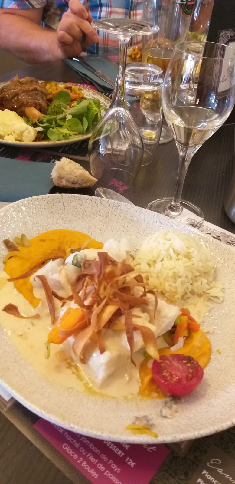 Excellent repas, brochettes st jacques, gigot légumes et desserts, très bien,merci à toute l'équipe 👌💕