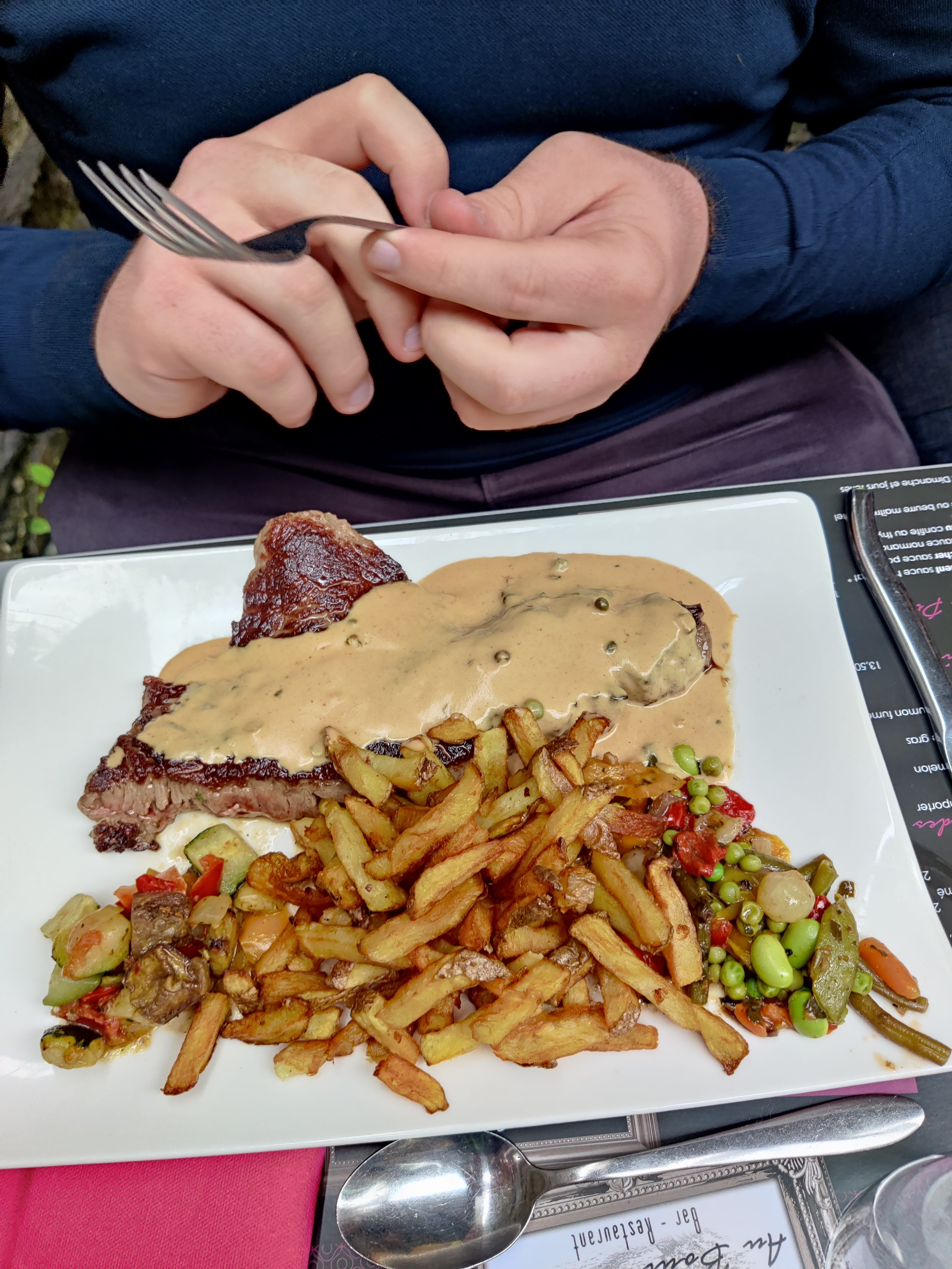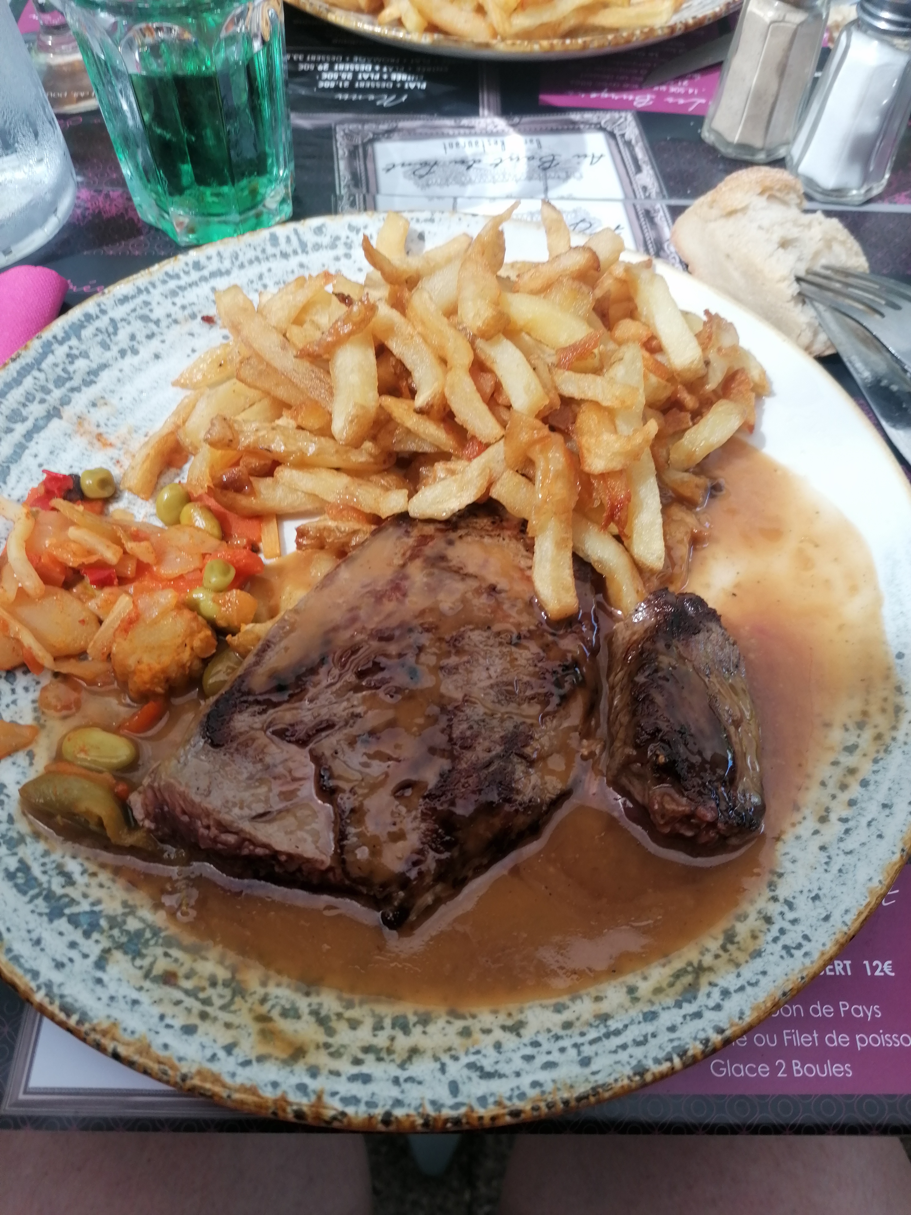 Très bon restaurant terrasse très agréable nous avons pris le menu, assiette très copieuse. La viande etait tres tendre bonne qualités de produits. Si je doit trouver des défauts assiette trop petite par rapport à sont contenant