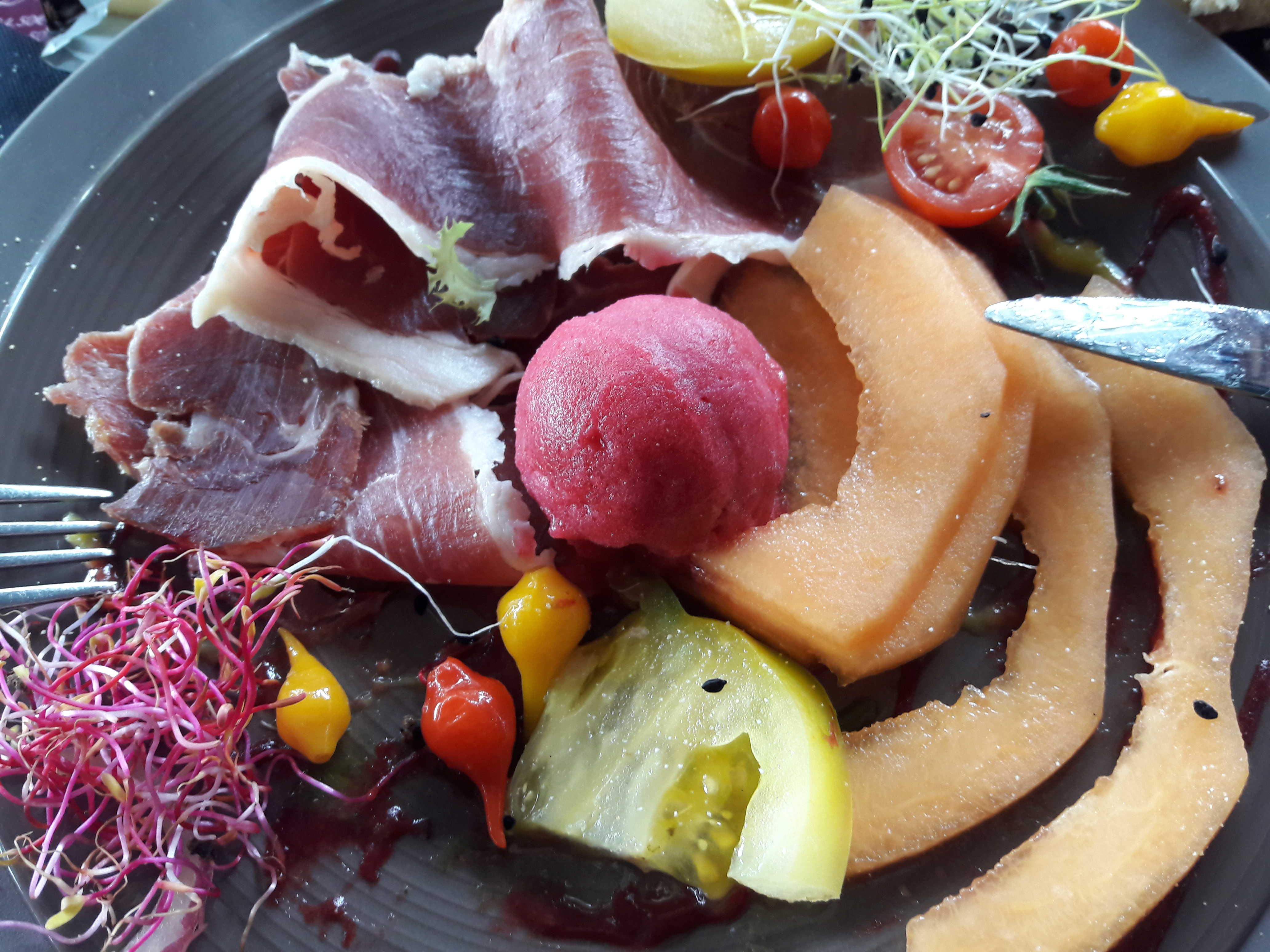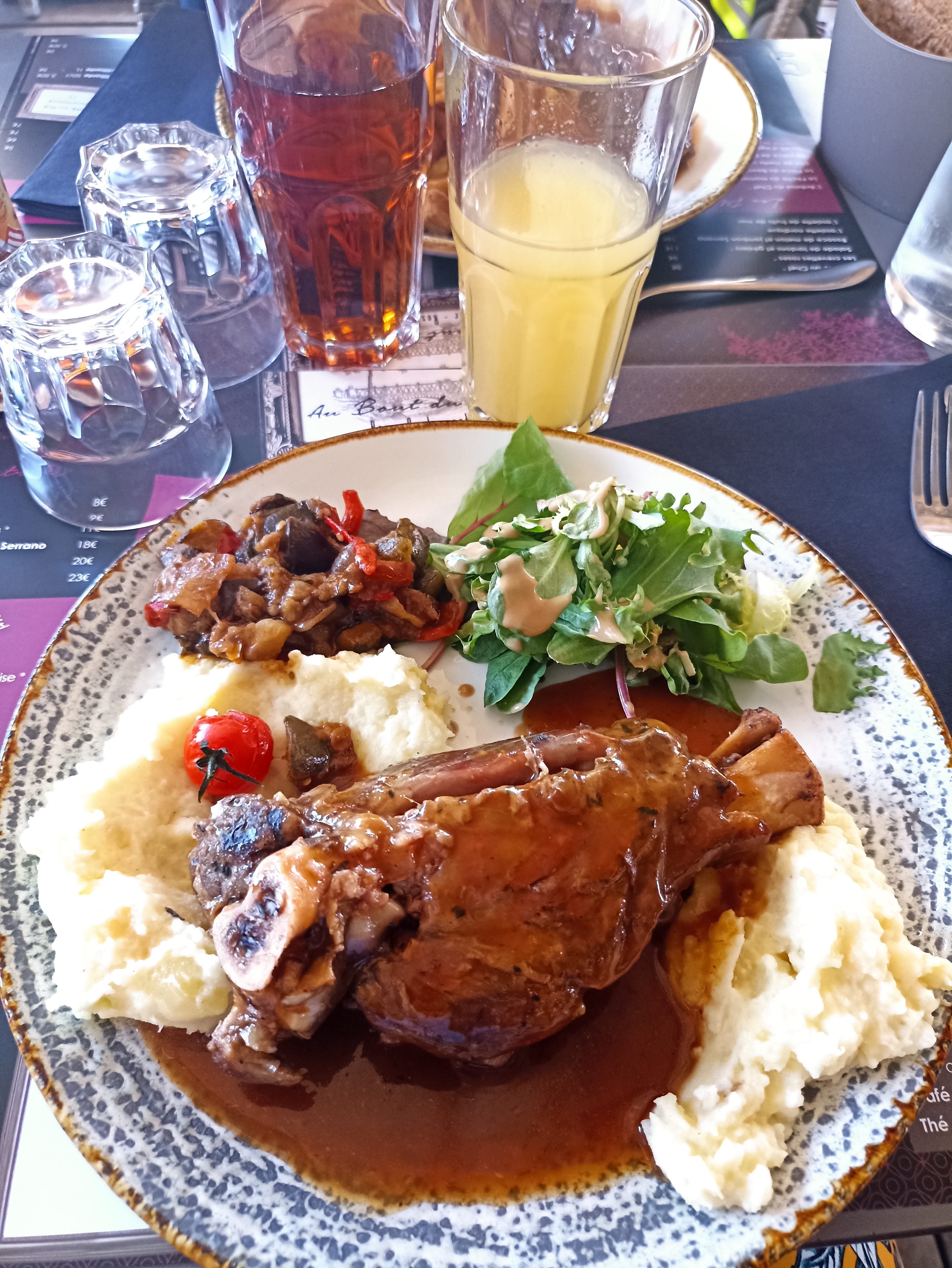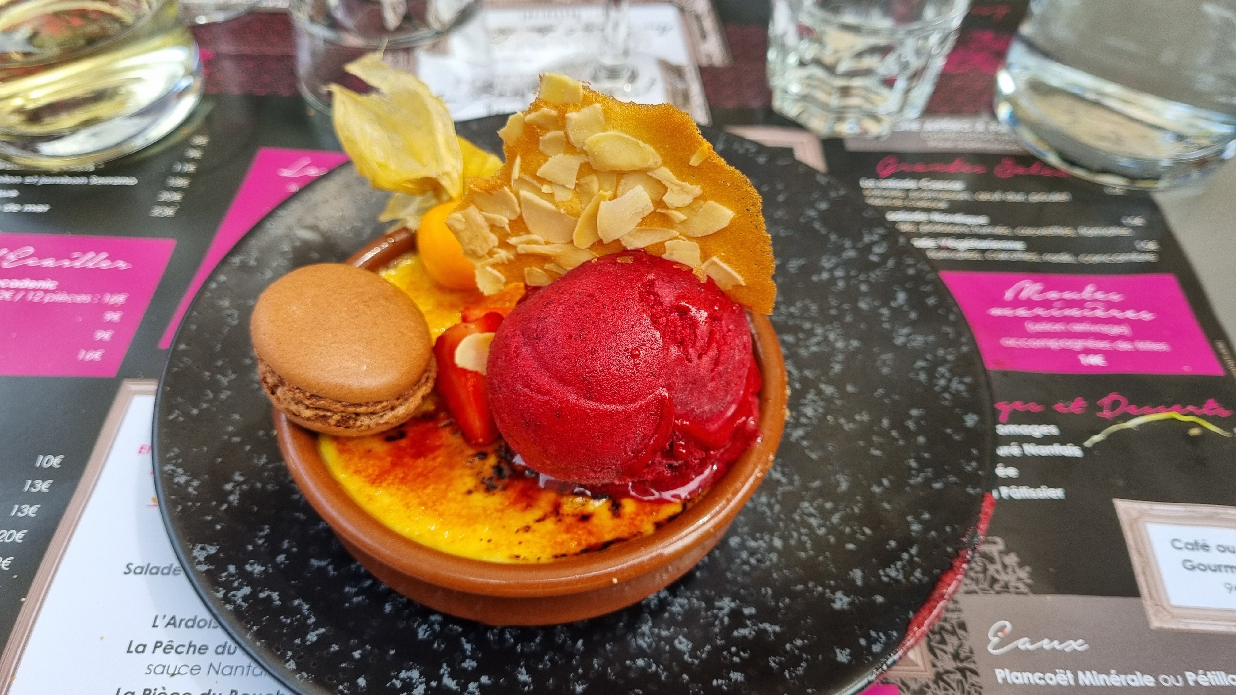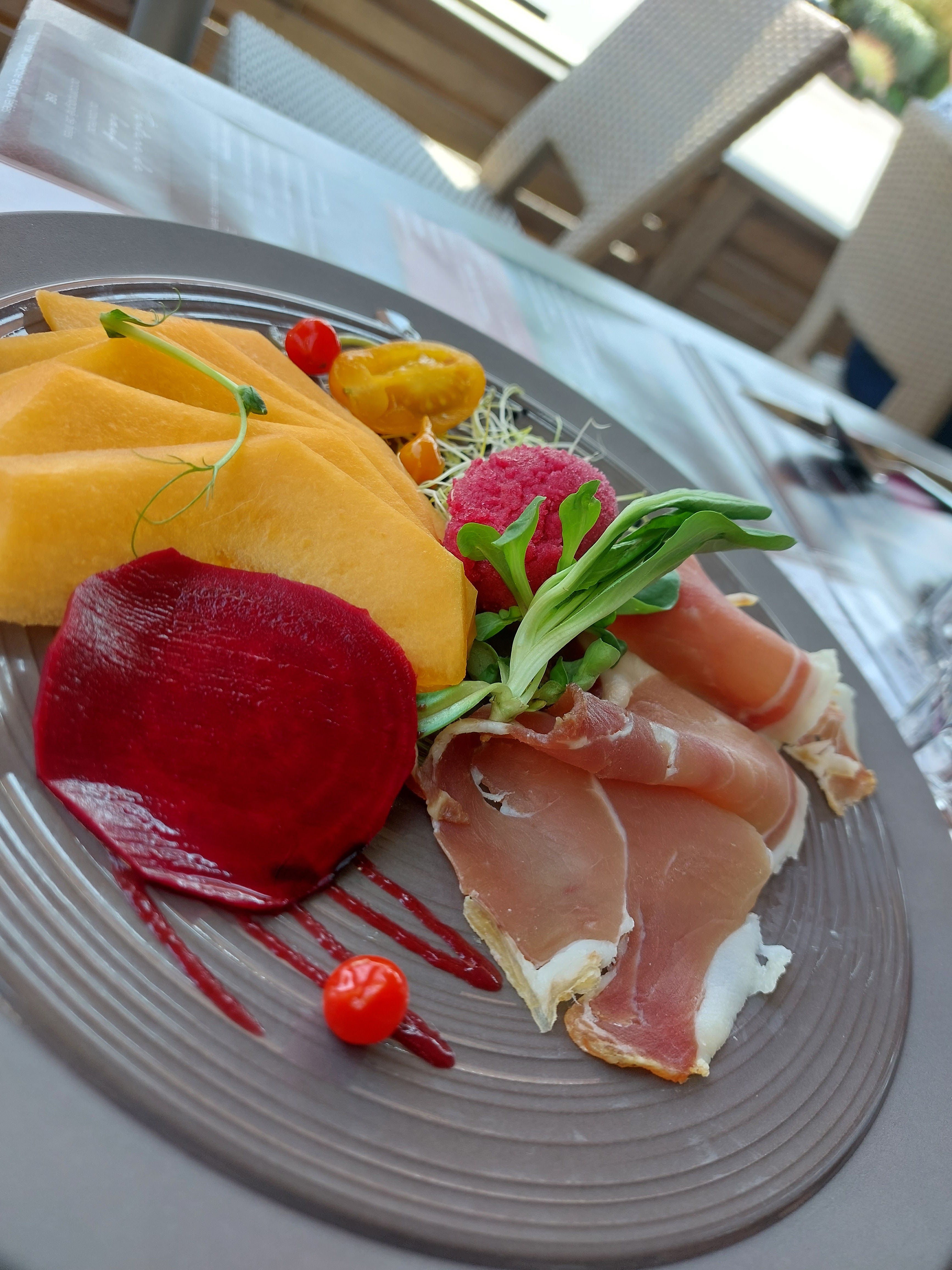 Que dire ? Quelle expérience gustative et visuelle ! Épatant, époustouflant, bluffant. Digne de certains gastronomiques pour des bourses à portée de tous. C'était aussi beau que bon ou aussi bon que beau. Mon coup de cœur : le sorbet betterave accompagnant la rosace de melon jambon serrano Ou la souris d'agneau fondante dans la bouche avec son accompagnement de petits légumes légèrement assaisonnés au curry 🤔 Dommage d'habiter si loin pour pouvoir en profiter plus souvent.