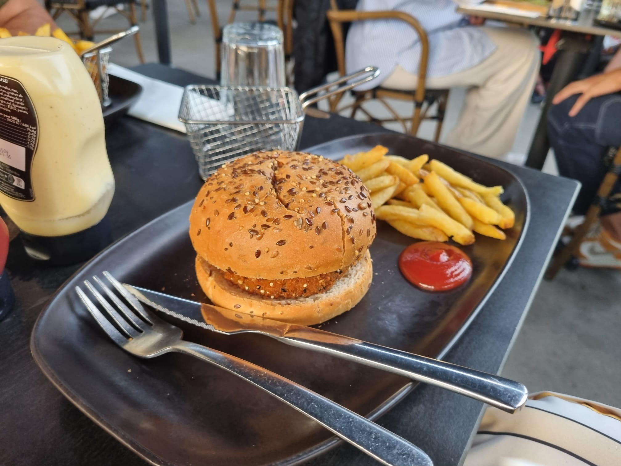 Venus en famille, l'attente a été extrêmement longue. La terrasse était très bruyante...et nous étions entourés de fumeurs😡 Nous avons dû demander pour passer commande, pour avoir du pain et de l'eau. Déçu . . 16€90 pour une salade avec œuf avocat poulet (un demi œuf, 1 lamelle très fine d avocat, je cherche encore le fromage… beaucoup de salade par contre!! )La sauce . . Aucun goût . Je trouve cela très cher pour la quantité et la qualité de ce plat. De même pour celle de ma fille. Le seul plat qui était bon c'était le burger. Les crêpes n'avaient pas de goût. Très déçu...nous ne recommandons pas.