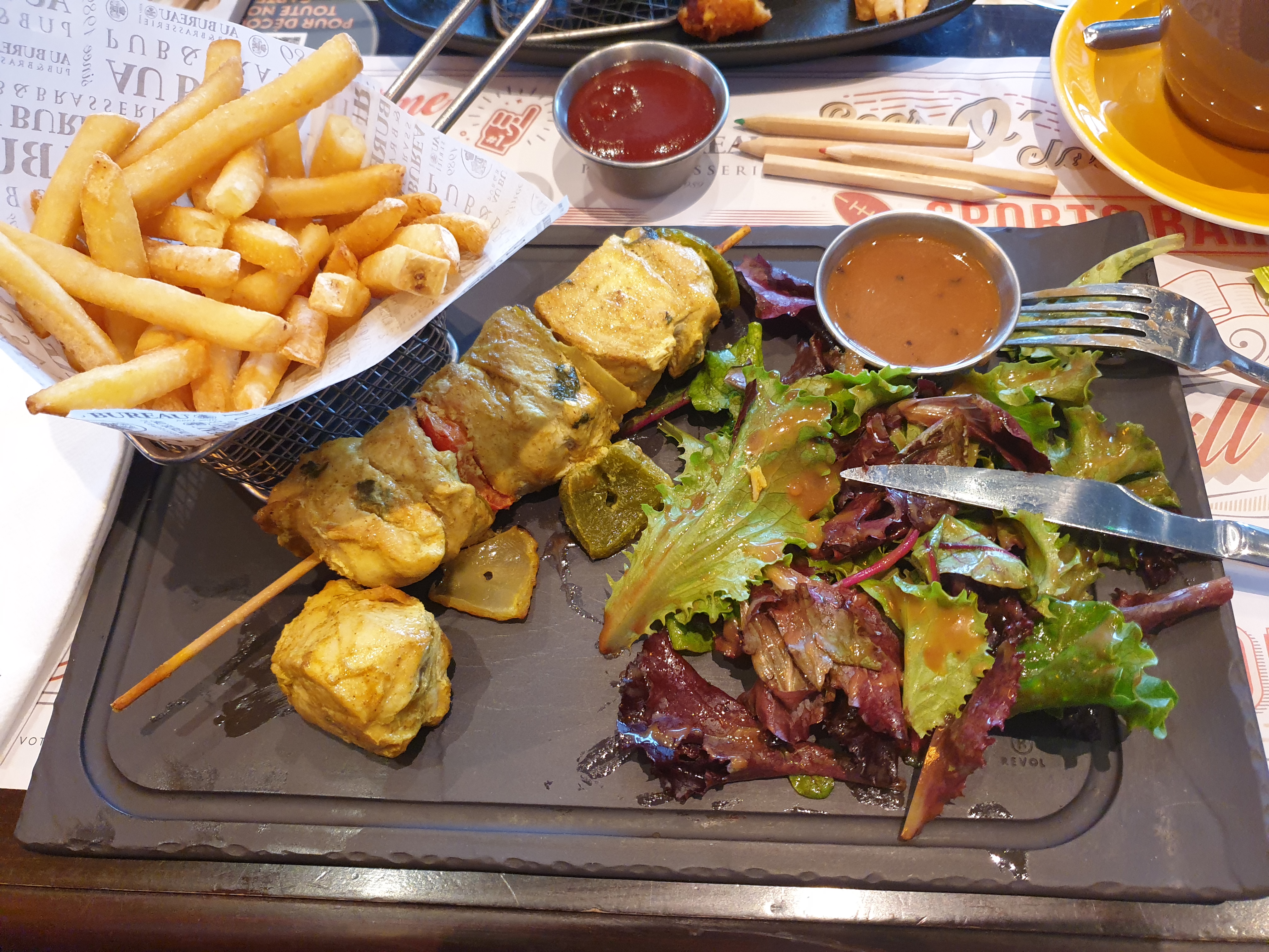 le plat était correct. la salle est pas mal. le serveur manquait un peu de conviction. Un truc un peu désagréable était d'entendre a plusieurs demandes que nous avons faites que cela faisait l'objet d'un supplément. les portions n'étant pas particulièrement généreuses ni hyper qualitatives cela laisse le client avec un sentiment mitigé lors du départ alors que l'on avait pas de grief particulier a formuler. Je ne pense pas y retourner.
