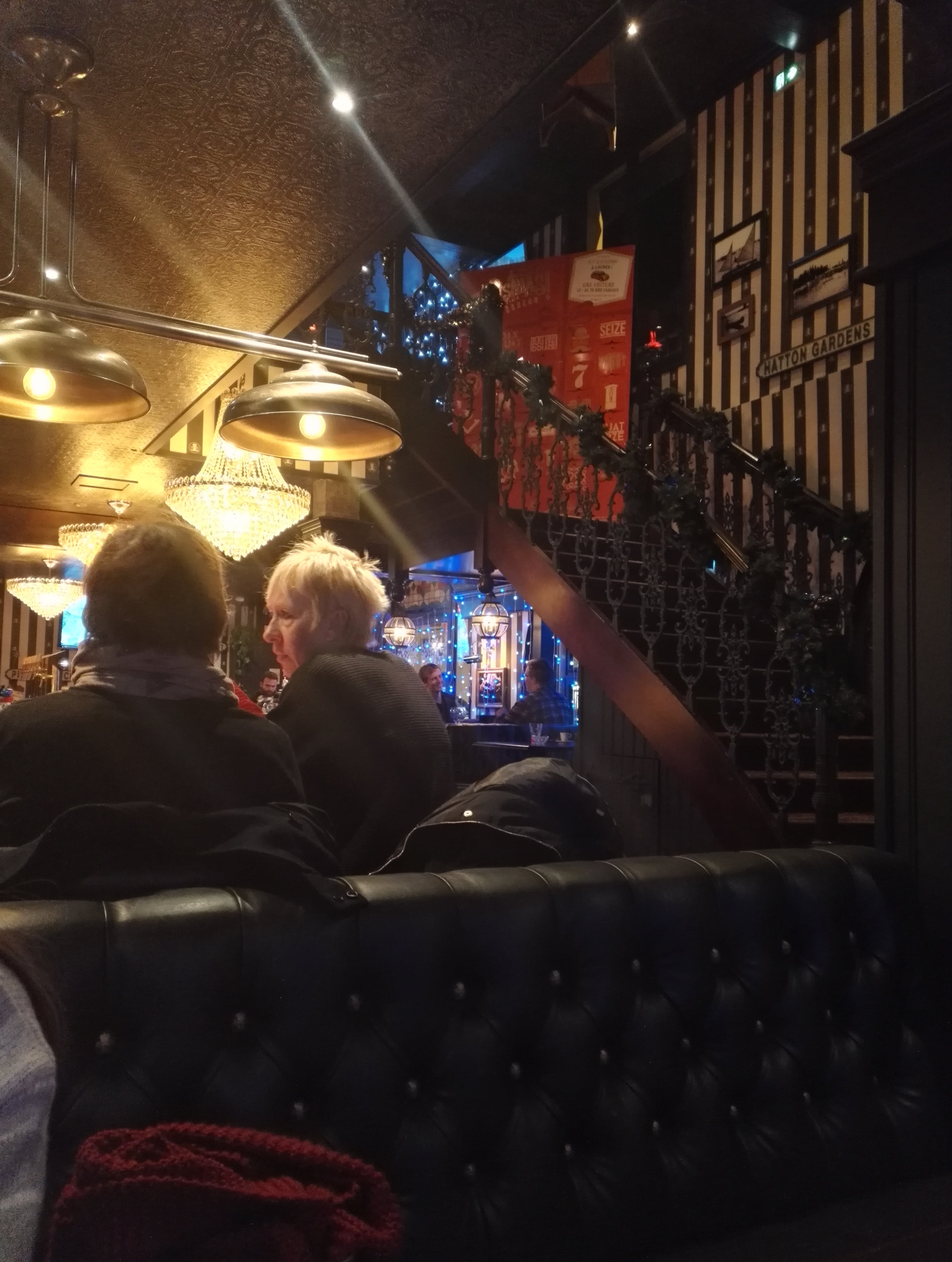 L'ambiance d'un bon British pub, lustres clinquants, lumière tamisée, du bois partout. De bons burgers et de bons chocolats viennois