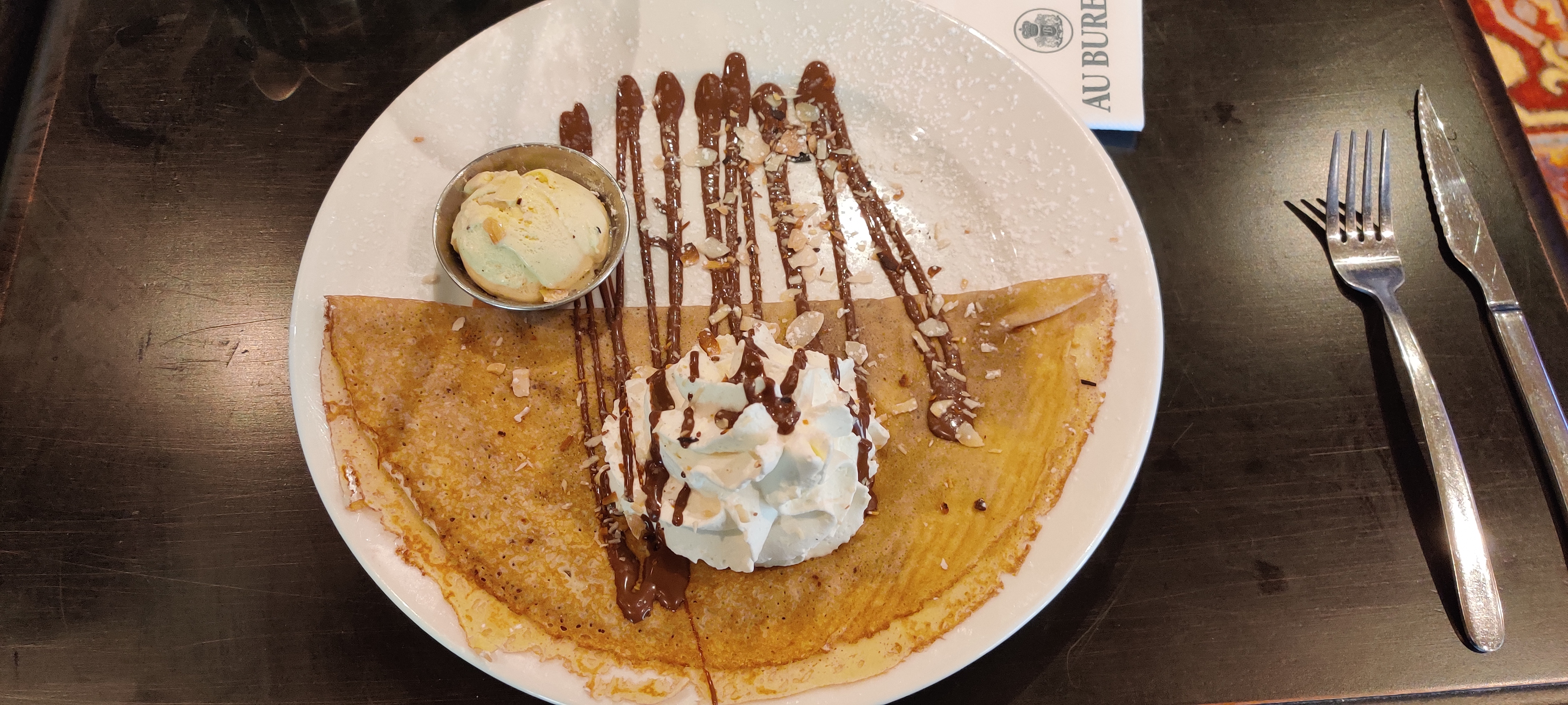 Repas pour 2 un midi, les frites étaient froides, on nous enlève le pain alors que l'on avait pris des fromages pour dessert. Presque toutes les desserts sont servis avec du chocolat, mais tout le monde n'est pas fan de chocolat... 1 seule glace sans chocolat...Il faudrait revoir la carte avec plus de choix dans chocolat.