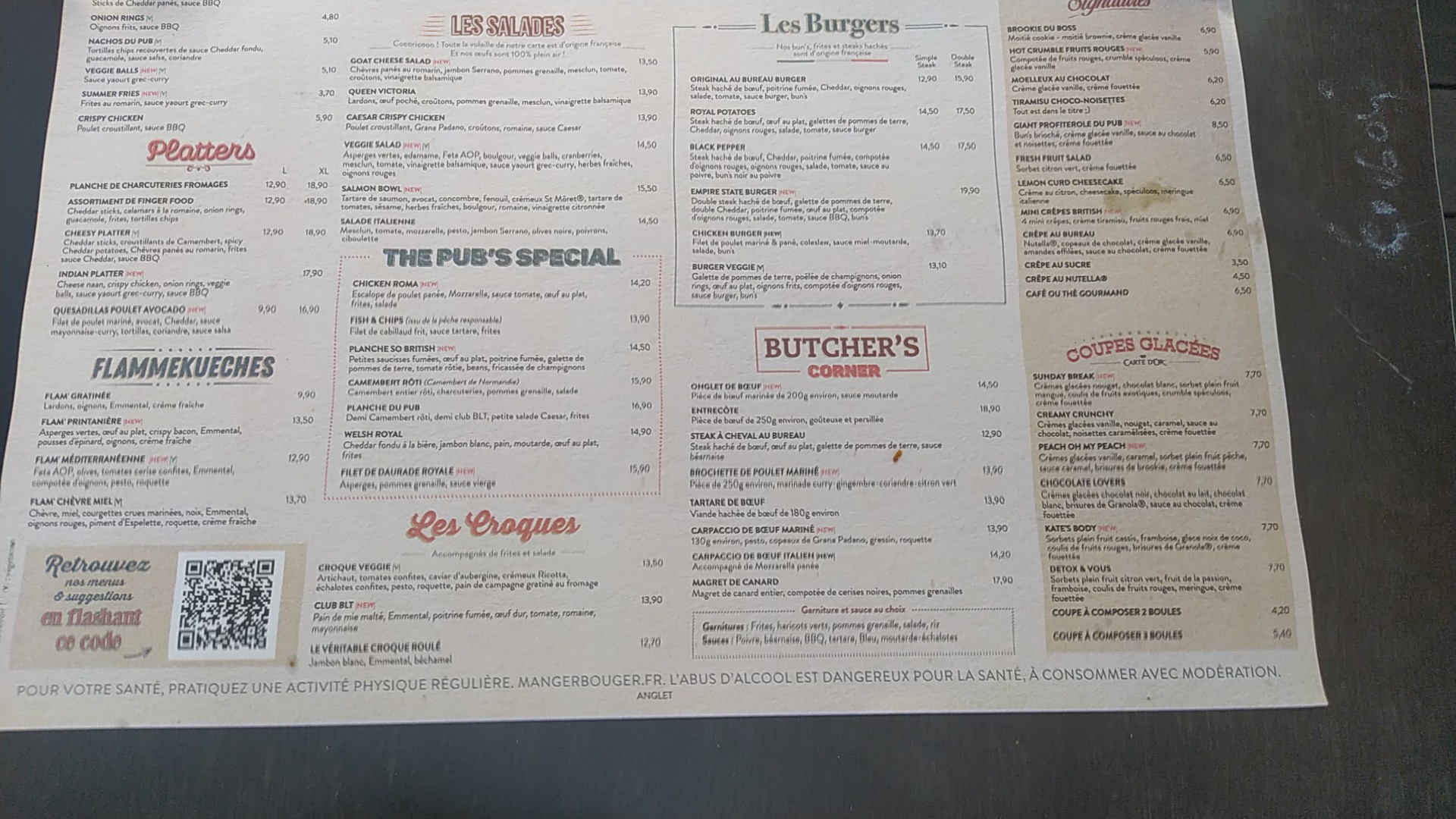 L'intérieur est très sympa ainsi que la terrasse. Par contre je trouve les prix élevés pour ce que c'est ! Déçue du welsh moi qui suis originaire du nord et dont le welsh est très populaire là-bas je peux vous confirmer que celui ci n'a rien a voir ! Personnel assez sympa dans l'ensemble