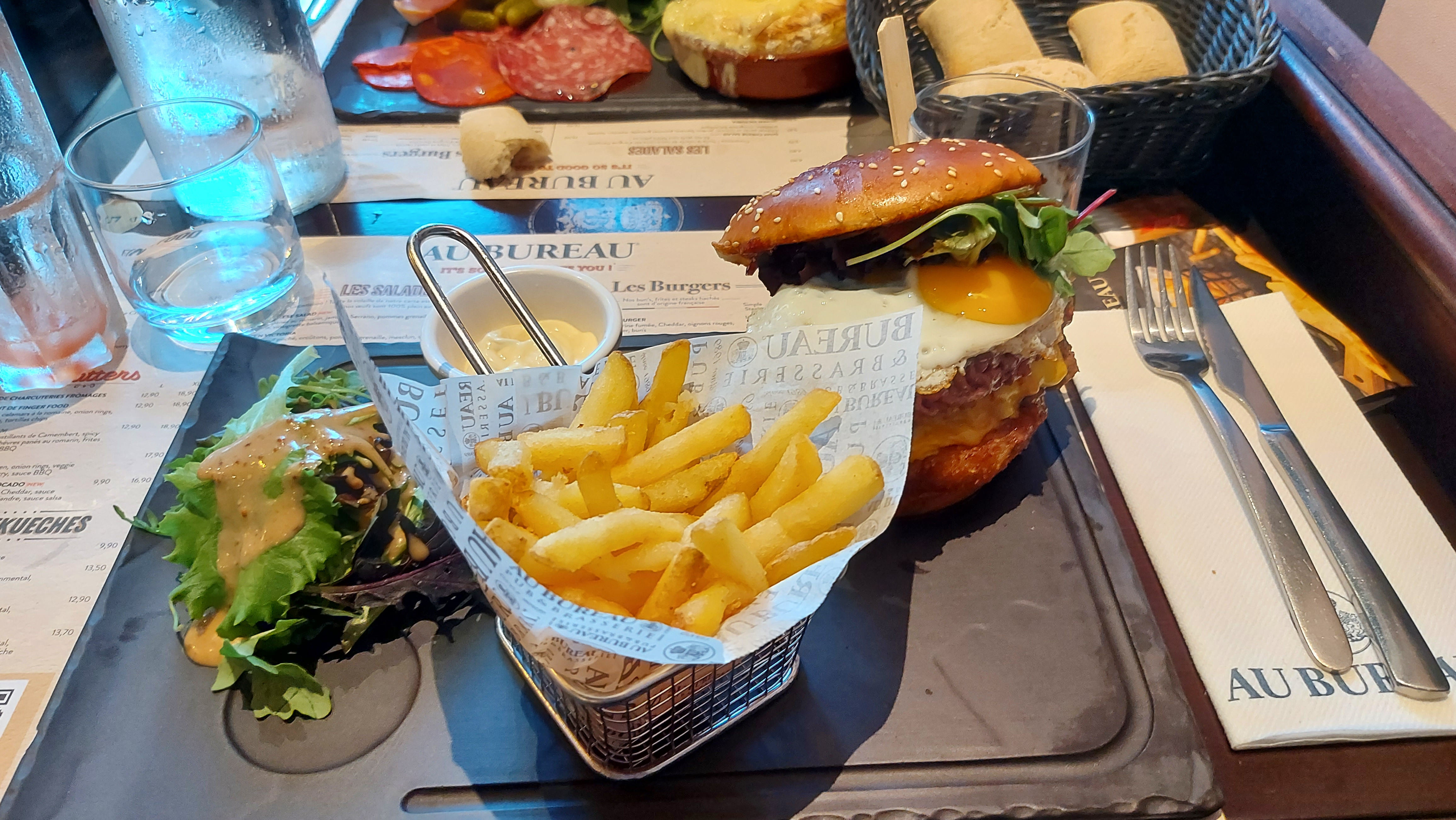 Nous avons très bien mangé. Service au top. Petit bémol concernant des demandes spéciales qui n'ont pas été respectées --> pas d'oignons dans le burger et une bougie sur le dessert pour un anniversaire, je pensais qu'il y aurait eu de la musique comme on a l'habitude d'avoir quand on fête un anniversaire Au Bureau de Brest.