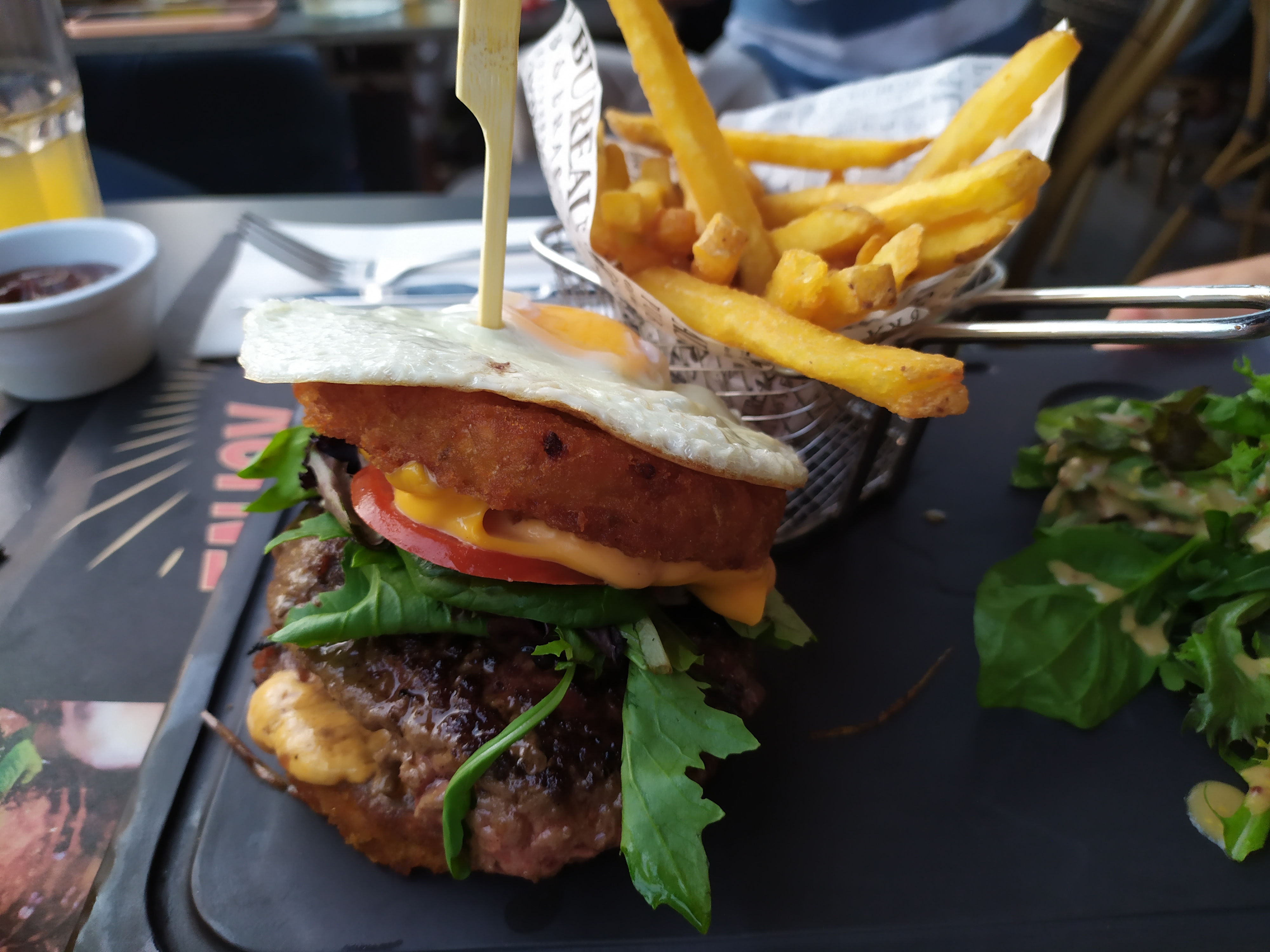 On peut y manger jusqu'à 14h30. Excellentes frites. Prix très abordable.