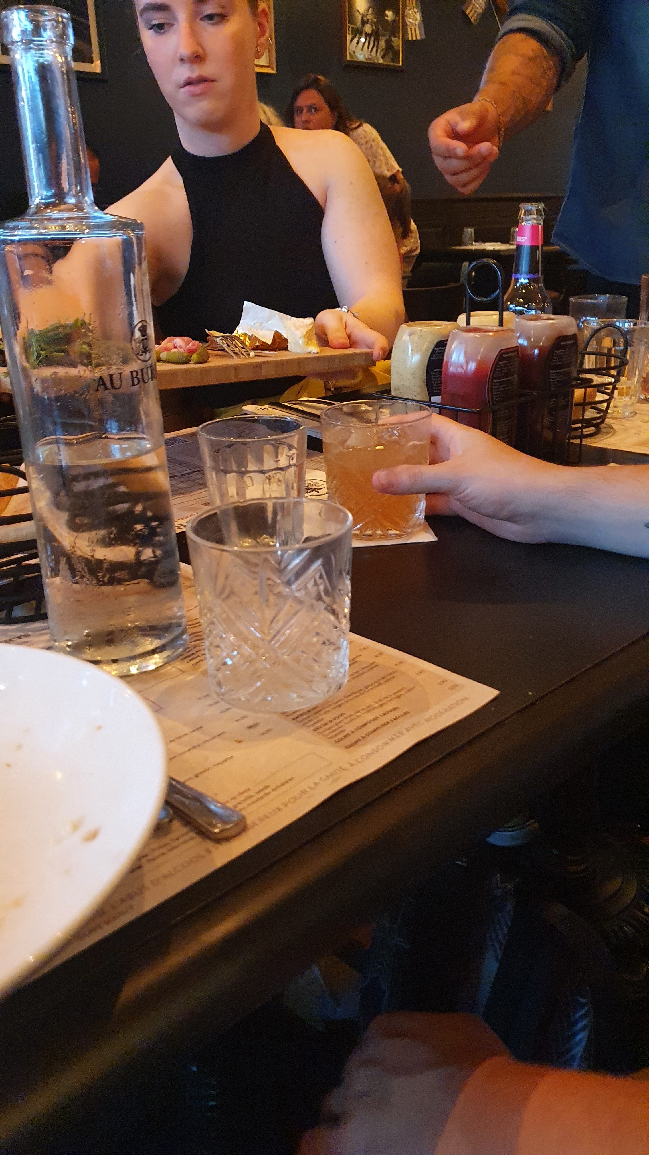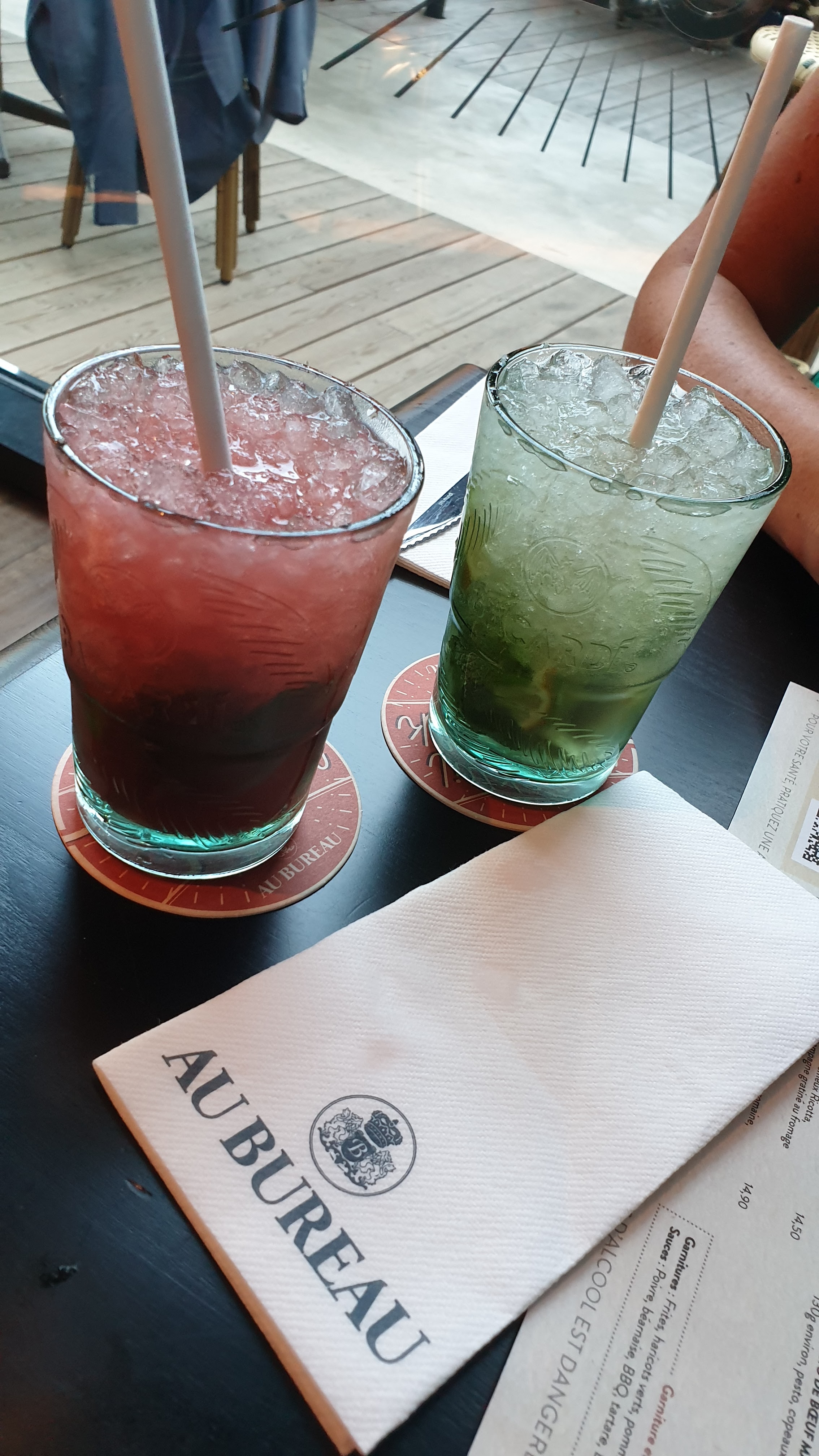 On est allez dîné avec une amie, le cocktail sont remplis de glaçons donc rapidement, ta boisson a gout d'eau 🤢 ça fait cher pour de l'eau! Puis on est revenu, dans la soirée, pour boire un verre, l'ambiance était chouette ! On commande (pas de cocktail) Le serveur au bout du sceau, lorsqu'on a recommandé, il fuit du regard, il avait l'air soulé 🥹 On chope le chef, qui nous ramène notre mètre de shoot get27 chaud 🥵 Au moment de payer, erreur sur l'addition, embrouille entre eux ! On dit au barman que le get 27 était chaud! Il nous répond qu'il le savait !!!!! HONTEUX !