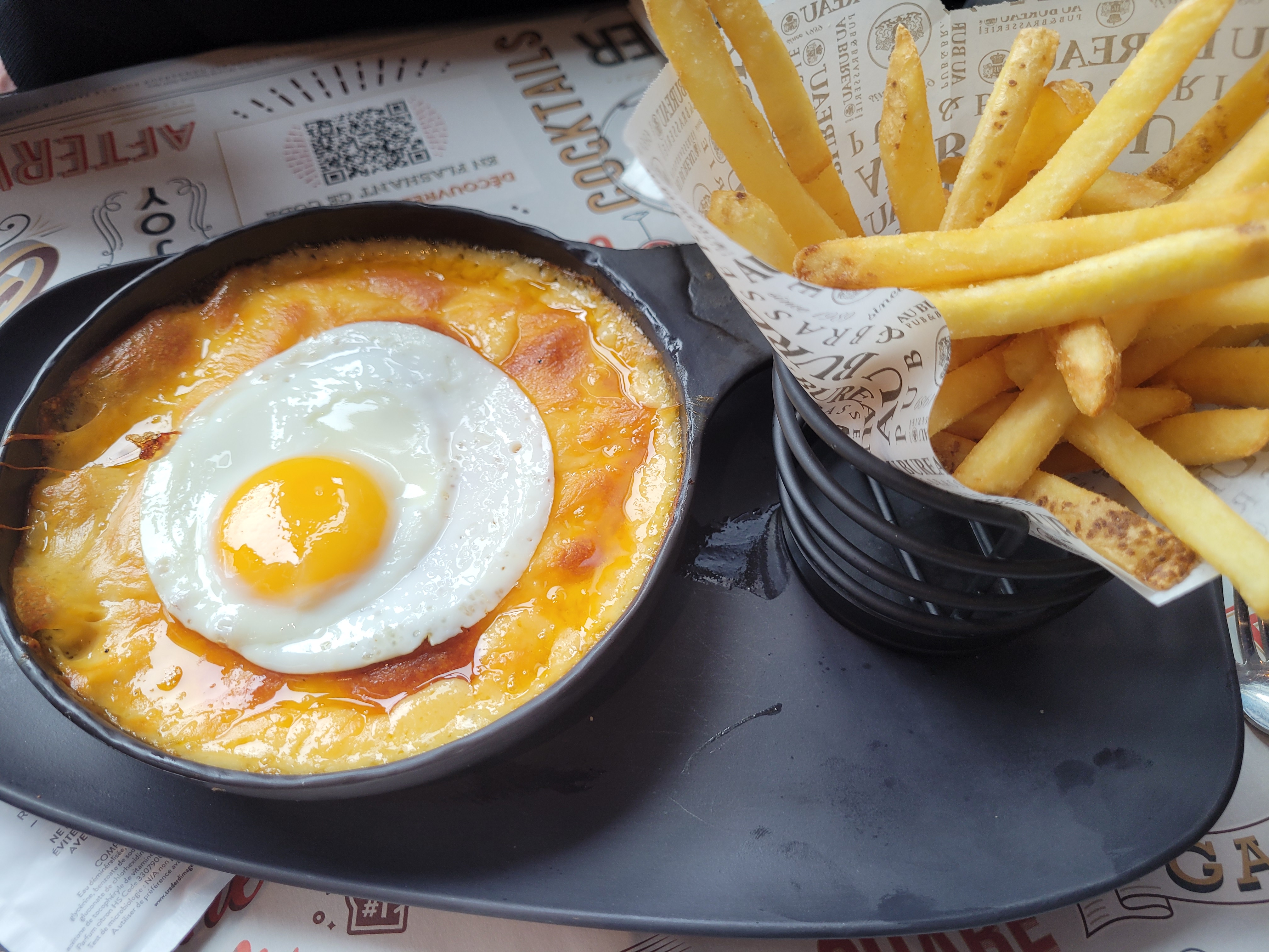 Nous avons voulus tester 2 plats qu'on connaissaient pas et bien très déçus ! trop gras et ça baignait dans l'huile... surtout le plat avec leouf au plat c'était que du cheddar de mauvaise qualité et de l'huile... dommage car l'endroit est bien sympas pour boire un verre !!