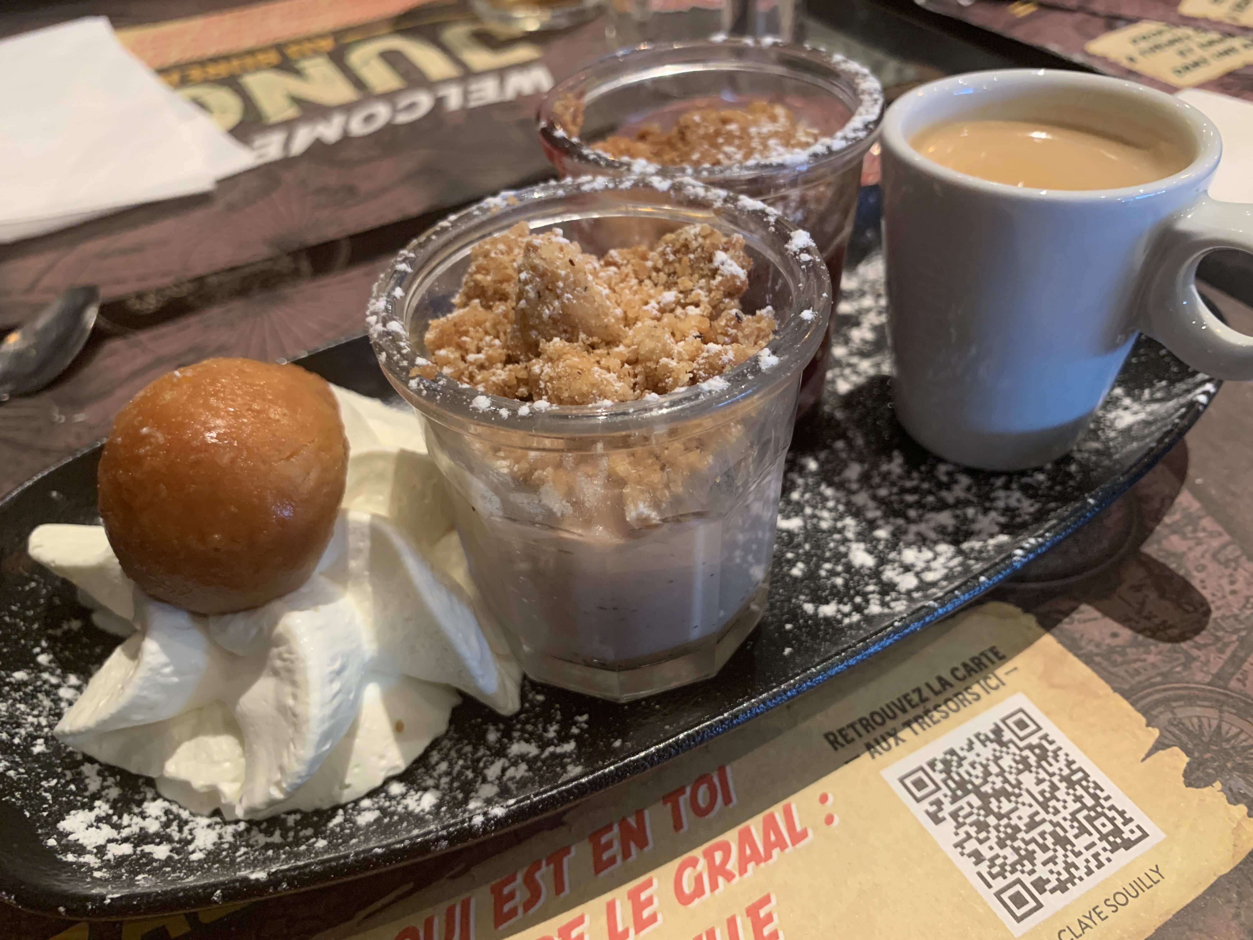 Arrivée à 23h00 accueillis par un charmant monsieur très souriant, on a pu commander des desserts à 23h00!!! Au top du top. Agréable moment 👍👍👍