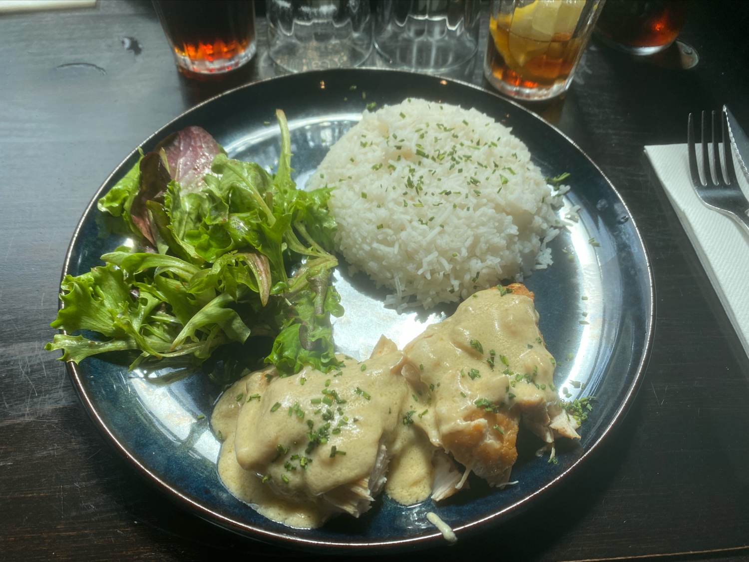 Le cadre est super sympa, le service un peu long mais très poli. Par contre mieux vaut manger avant, car les assiettes notamment les salades sont extrêmement petites. ...et chère du coup pour la quantité.