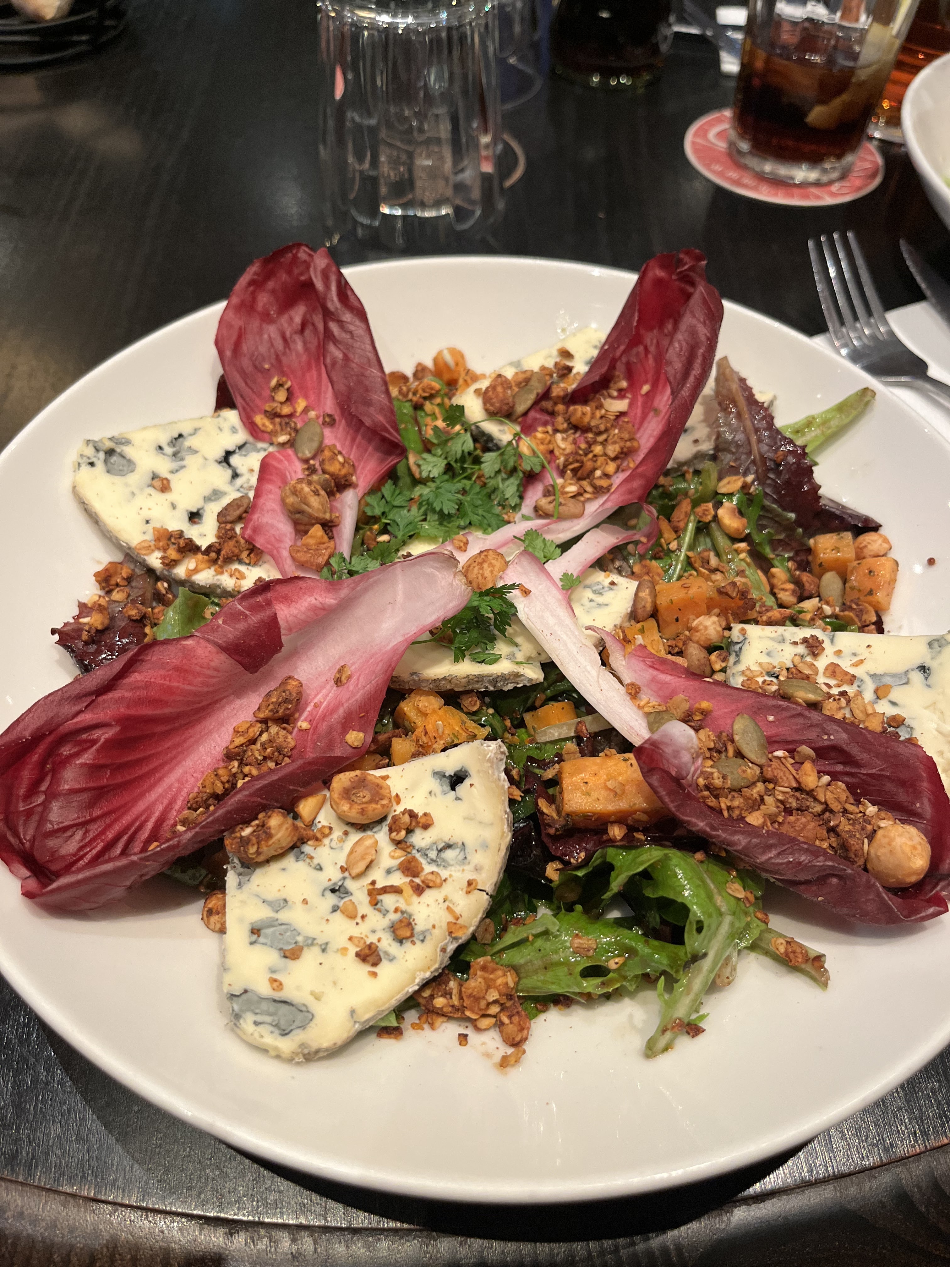 Après avoir été accueillis par un serveur, nous avons commandé 2 salades et un camembert rôti. A notre mauvaise surprise les salades étaient MINUSCULES. Nous avons fait part au serveur de notre retour, ce à quoi il a répondu « c’est une salade monsieur » Nous ne reviendrons plus