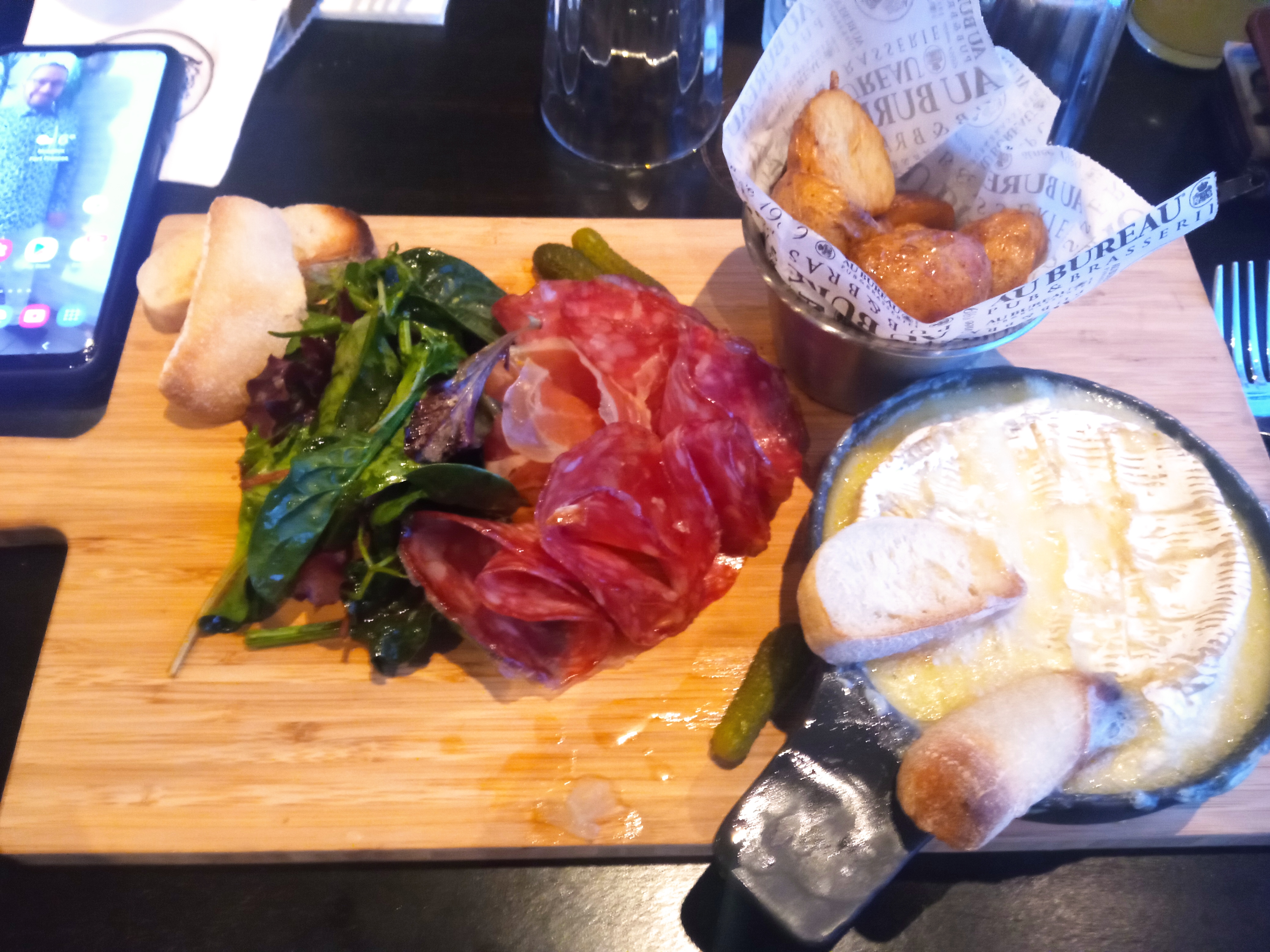 Sur notre route de retour d un road trip dimanche après-midi. Contents de trouver un établissement ouvert vers 17h00. On a vite regretté cet arrêt. Service long et pas professionnel. Planche charcuterie fromage xl est en fait une planche pour 2 facturée à 19,90€. On a oublié de nous la servir mais on nous apporte l 'addition. Carafe d eau tiède. Pas de Perrier. Pas livré... Belle déco.