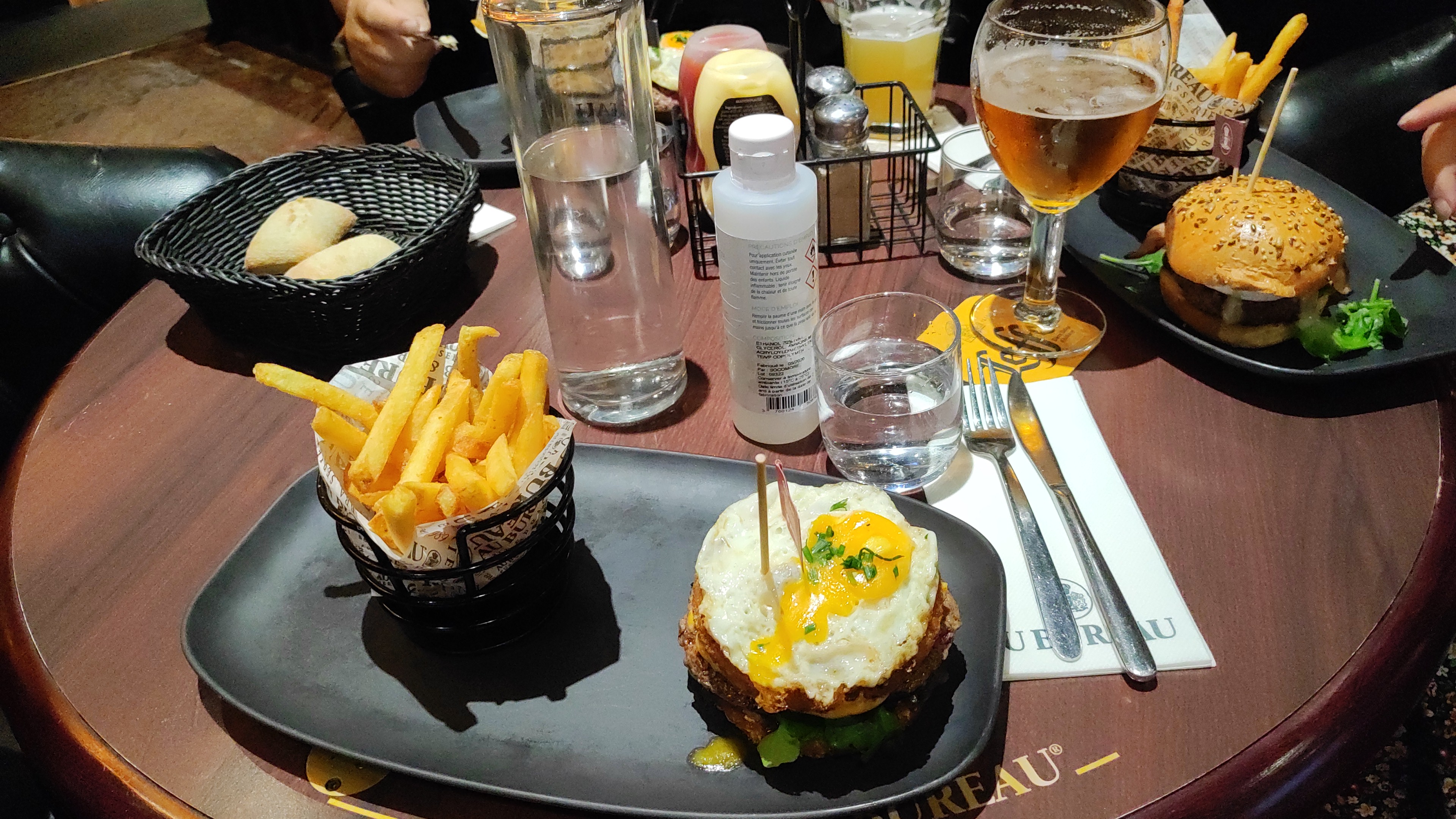 Service déplorable, il y a pas grand chose de plus a dire malheureusement, Je suis généralement gentil mais j'aime pas l'idée de demander mon apéritif 3 fois et ne rien avoir au bout de 40 minutes Finalement, les boissons arrivent et c'est la catastrophe, rien ne correspond : des sirops à la place des jus de fruits, et un cuba libre sans coca... J'aurais été plus tolérant si la salle n'était pas juste à moitié pleine. Quand au repas... Rien à voir, le burger est savoureux, copieux et le steak haché est de bonne qualité. À noter, les frites ne sont pas fait maison. Enfin, le dessert, très satisfait également. Malheureusement, en parallèle, un Ricard servit dans un verre sale et un temps d'attente toujours très long... Globalement, je suis quand même très insatisfait, trop de déceptions qui ne sont pas compensées par la qualité du burger... ---- Deplorable service, there's not much more to say unfortunately, I'm usually nice but I don't like the idea of asking for my aperitif 3 times and getting nothing after 40 minutes. Eventually, the drinks arrive and it's a disaster, nothing matches: syrups instead of fruit juices, and a cuba libre without any coke... I would have been more tolerant if the room wasn't just half full. As for the meal... Surprisingly, the burger is tasty, hearty and the steak is of good quality. Note that the chips are not homemade. I was also very satisfied with the dessert. Unfortunately, at the same time, a Ricard was served in a dirty glass and the waiting time was always very long... Overall, I'm still very dissatisfied, too many disappointments that aren't offset by the quality of the burger...