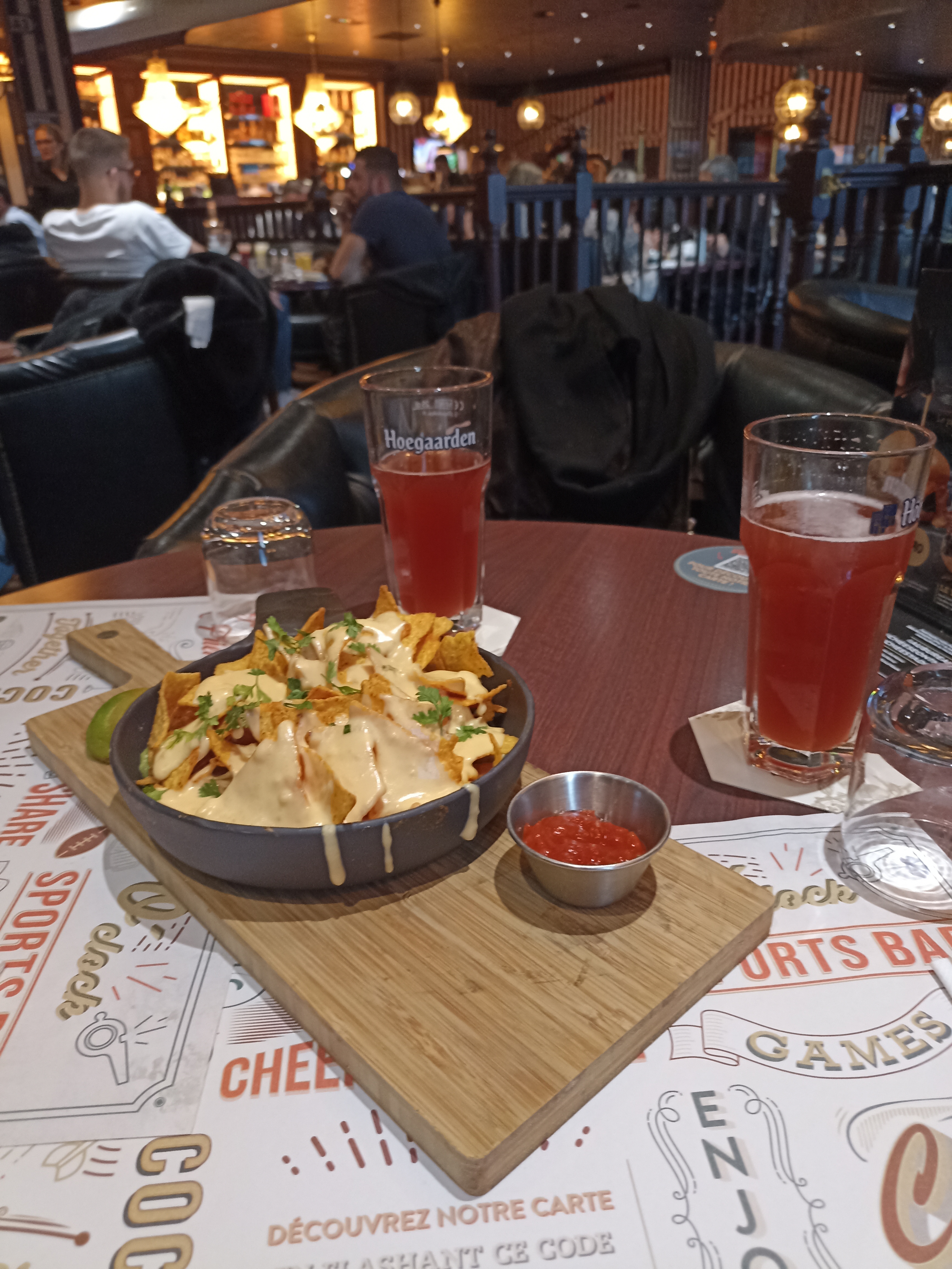 Très bons moments passés dans ce restaurant au look pub. Notre serveur Achraf à été parfait du début à la fin, cela fait plaisir d'être servi par une personne très souriante et heureuse de faire partager sa joie de vivre.