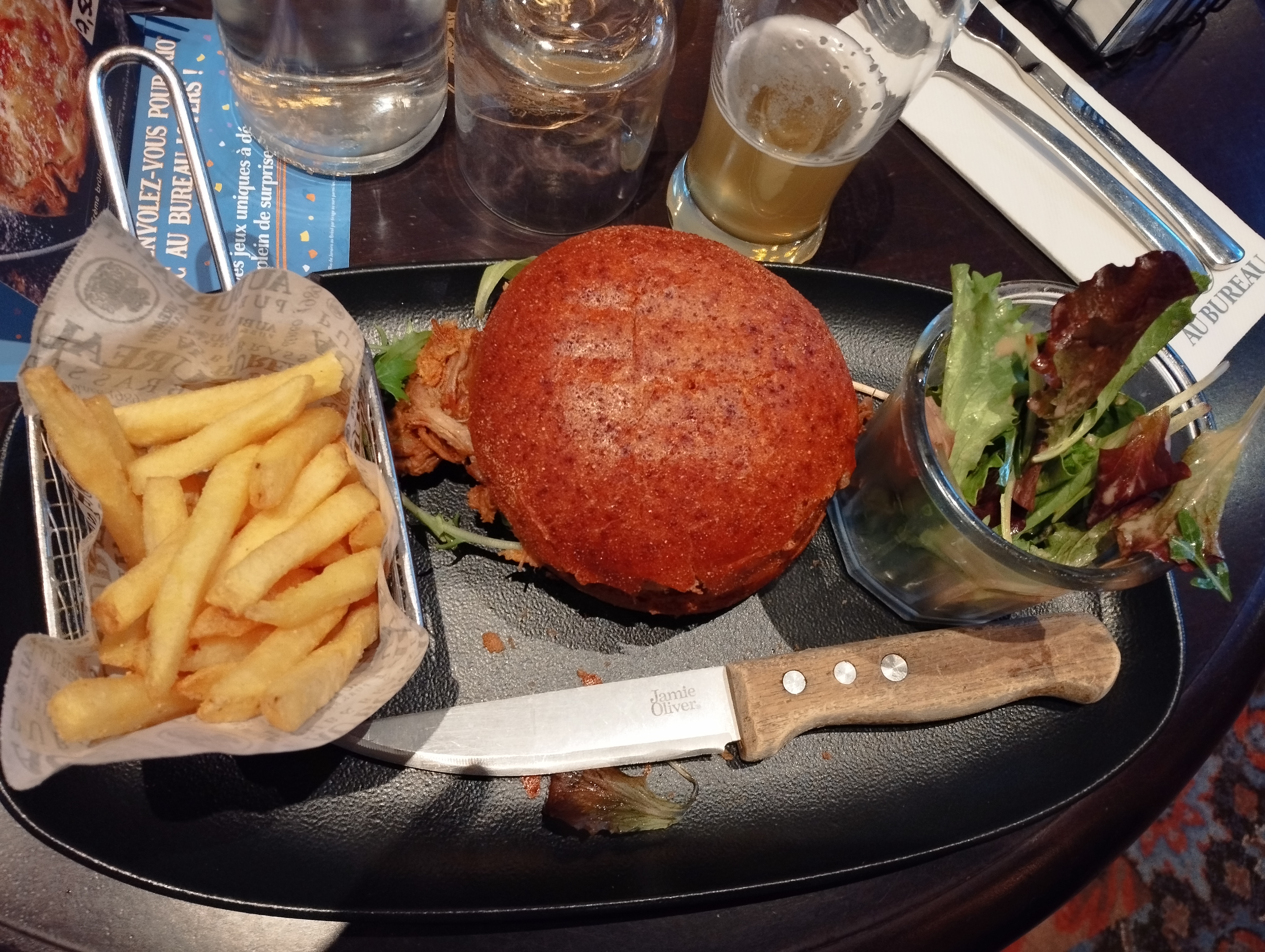 Super accueil. On a été vite servi (on allait au ciné juste après) ce qui a été très agréable. Le burger était super bon le steak saignant comme demandé. Coup de cœur pour le mojito framboise.