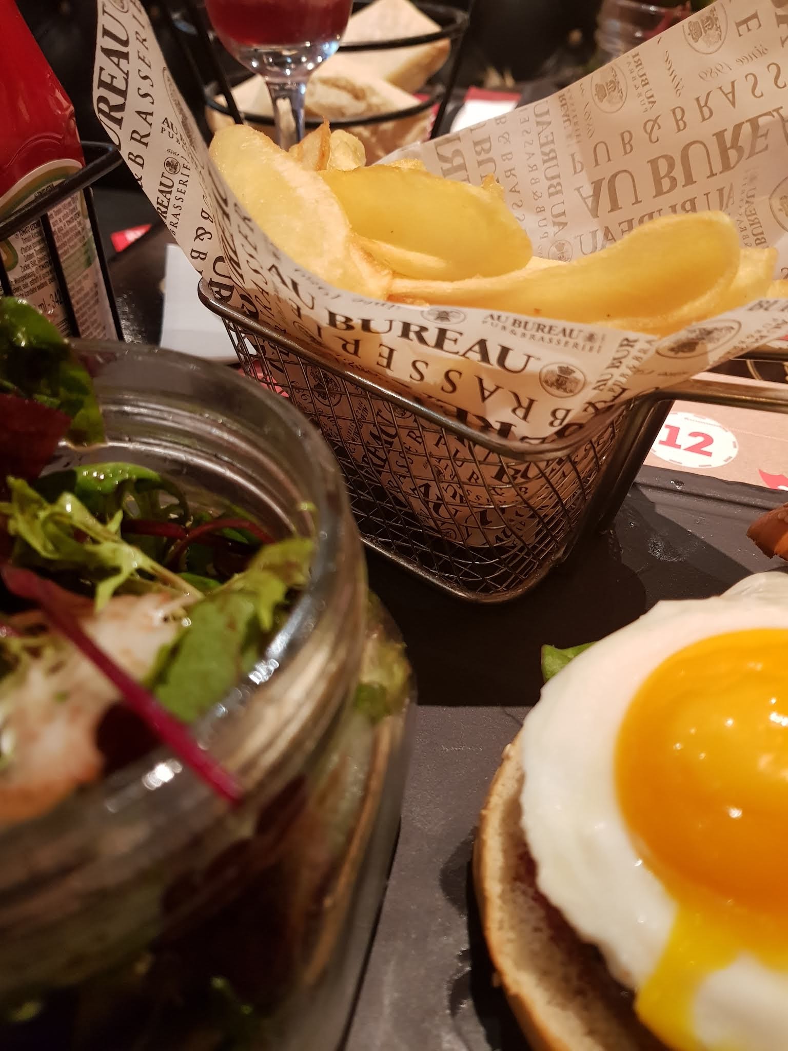 Voilà. Je rentre à peine de ma soirée Au Bureau et juste envie d'une chose... poser ici mon avis sur ce restaurant irréprochable. Accuelli un samedi soir sans réservation, la salle est complète mais on nous a trouvé une petite table direct sans attente. Les plats arrivent toujours aussi vite. L'équipe est encore une fois souriante et attentionnée, avec à chaque fois un petit mot pour personnaliser le service. Ce soir, j'ai même malencontreusement renversé ma bière dans mon cheesecake (grosse déception personnelle !). Je n'aurai jamais osé demander à le remplacer car c'était de ma faute, et ils m'ont offert un cheesecake ! Alors respect, car ils m'ont redonné le sourire 😃. Cela dit en passant le cheesecake est absolument délicieux et très aérien. Un délice. Ce coup-ci, c'est moi qui voulait faire un bisou au manager et à toute l'équipe 😂. Bravo à tous. Merci beaucoup. Je recommande.