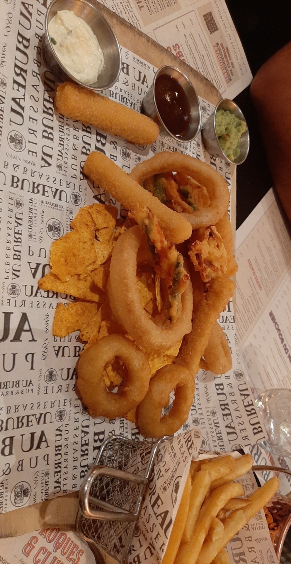 Restaurant sympatoche quand on est fan des au bureau, on s'y retrouve. Service agréable et flexible aux demandes particulières. Atmosphère pub, RAS - la maison était pleine pour ma visite ce mardi midi. Seul bmol - les chips mexicaines avec l'assortiment de fingerfoods qui avaient un goût inattendu et pas savoureux.