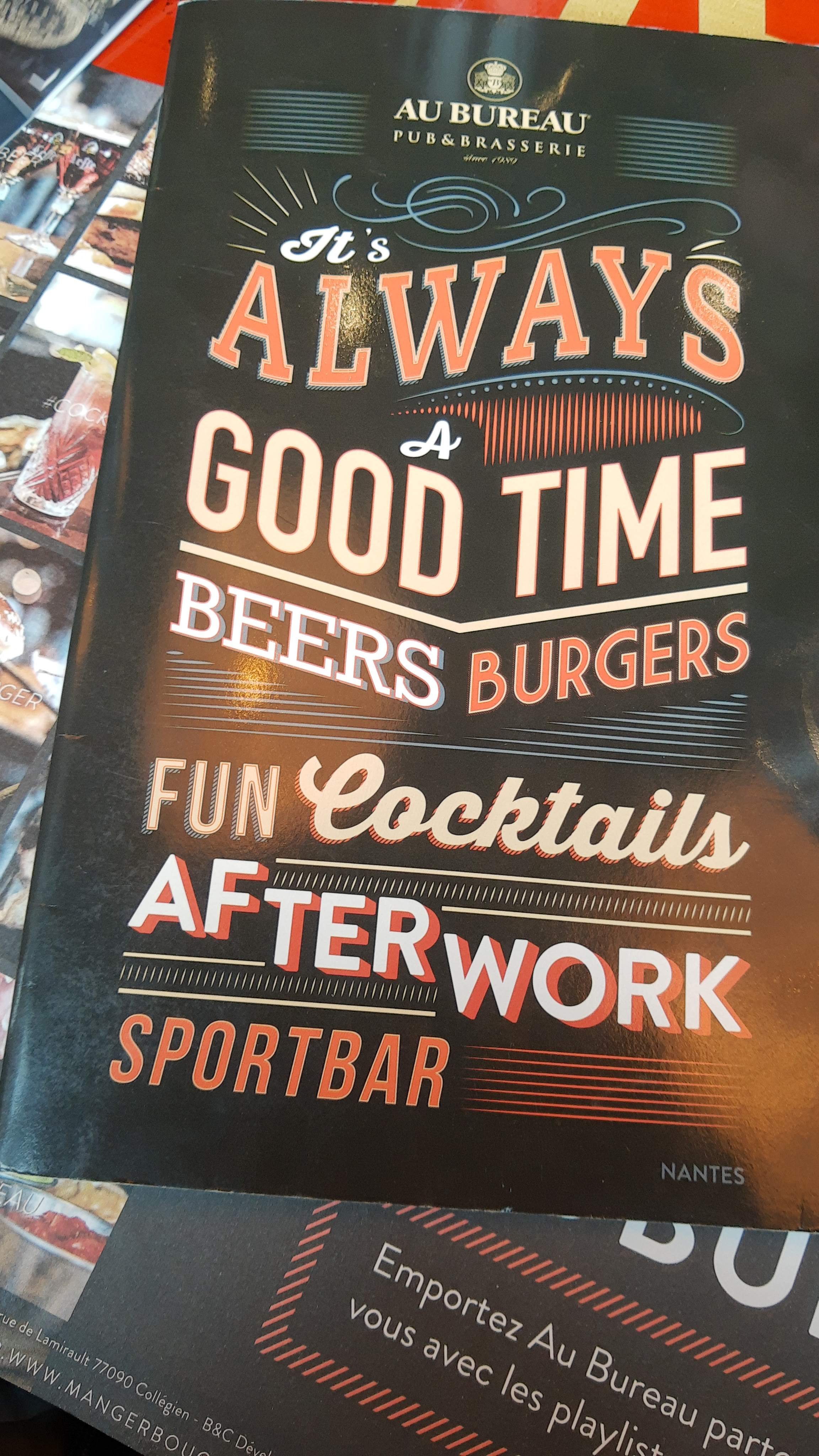Des Bureau on en trouve un peu partout en France et si la carte peut varier en fonction des endroits, on y retrouve généralement les mêmes choses. Celui de Nantes n'est pas l'exception mais au moins c'est très bon, assez copieux et raisonnable question prix. J'ai pu y tester le burger Au Bureau double steak que vous pouvez voir en photo et la coupe glacée Frenchy qui est tout simplement énorme (mais on paye le prix à plus de 8€ la coupe). Rien à signaler si ce n'est qu'il vous faut toujours regarder votre addition car il arrive qu'il y ait des petites erreurs et ce fut le cas pour moi. Heureusement le souci a été réglé en quelques secondes par des serveurs très sympathiques. Bref un endroit que je recommande pour qui veut manger rapidement sans se casser la tête et sans chichi. Par contre situé en bordure de Loire et en plus en pleins travaux en août 2017 y venir en voiture sera un peu difficile surtout pour se garer très près du restaurant.