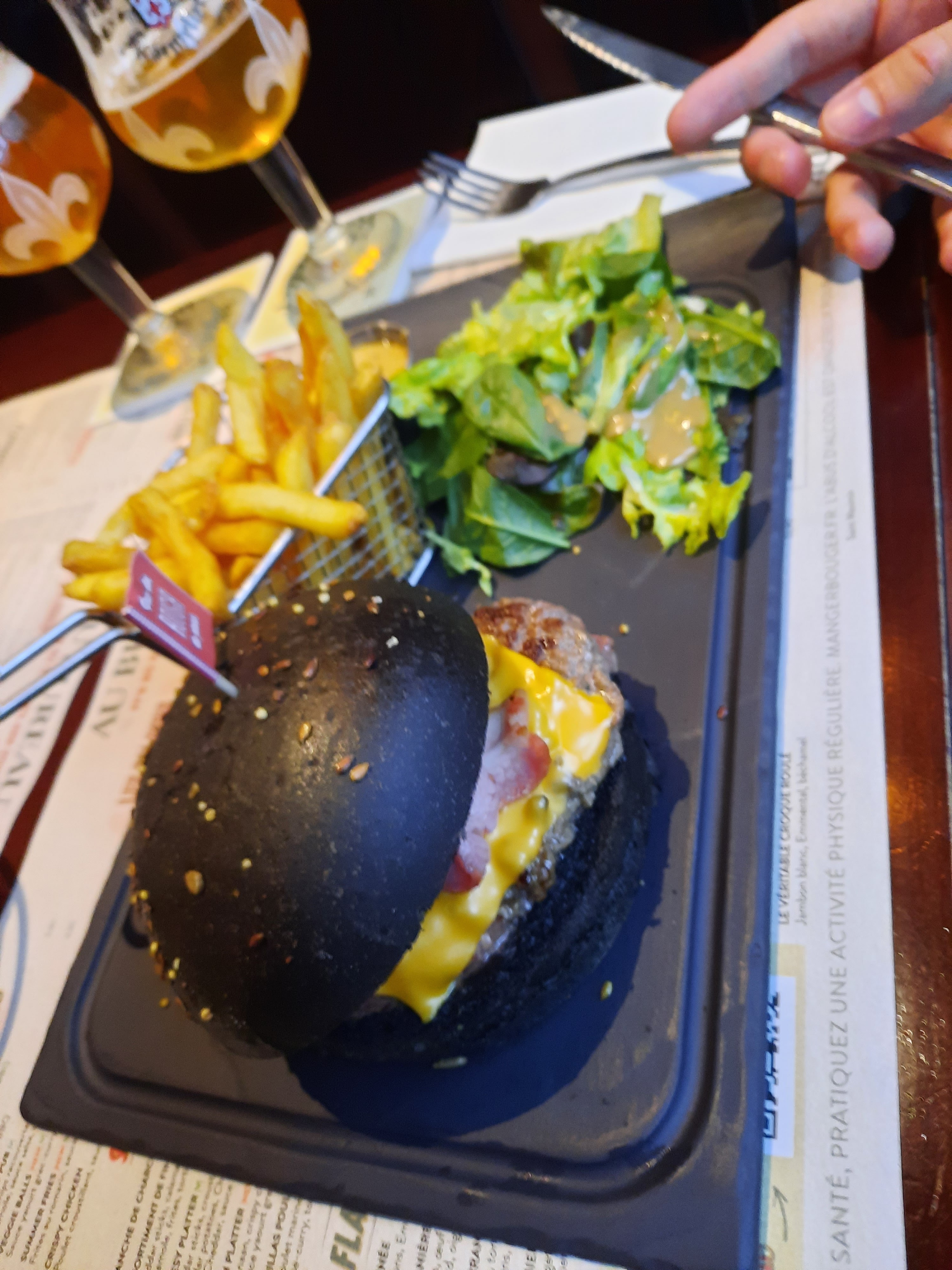 Bon accueil, serveur agréable. Nous avons mangé des burgers qui étaient très bons et qui changeaient de ce qu'on trouve dans certains restaurants Les chiens sont acceptés à l'intérieur et en terrasse, un plus pour ceux concernés