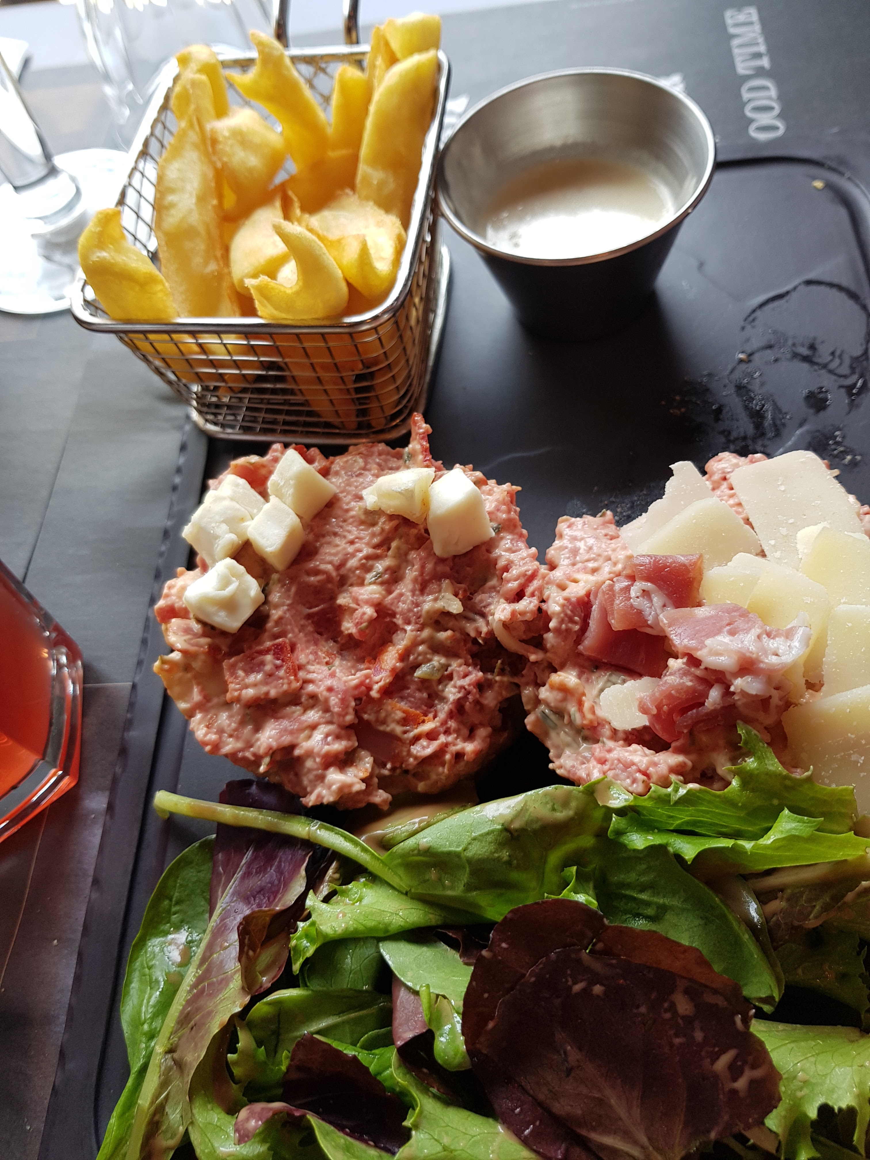 Très déçu, nous étions 3 a prendre des salades, une pas assaisonné, une bonne et une qui baigné dans la sauce donc déçue , apéro très long a être servi