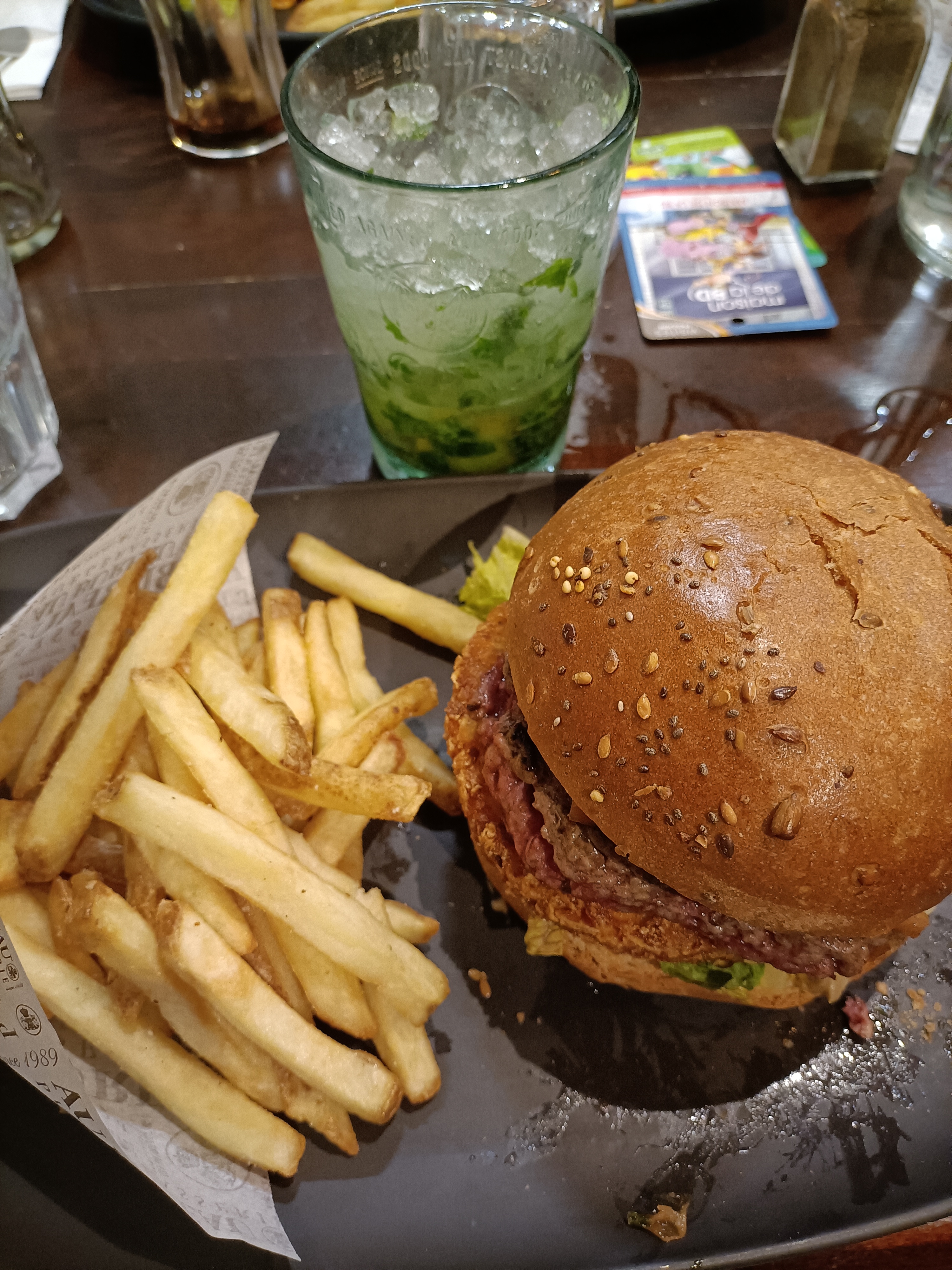Après un coup de fil un peu tardif. Nous avons pu passer un bon moment en dégustant un bon burger. Ainsi qu'un excellent cocktail maison dont seul le barman à le secret Et cela malgré l'heure tardive, grâce à la gentillesse du personnel.