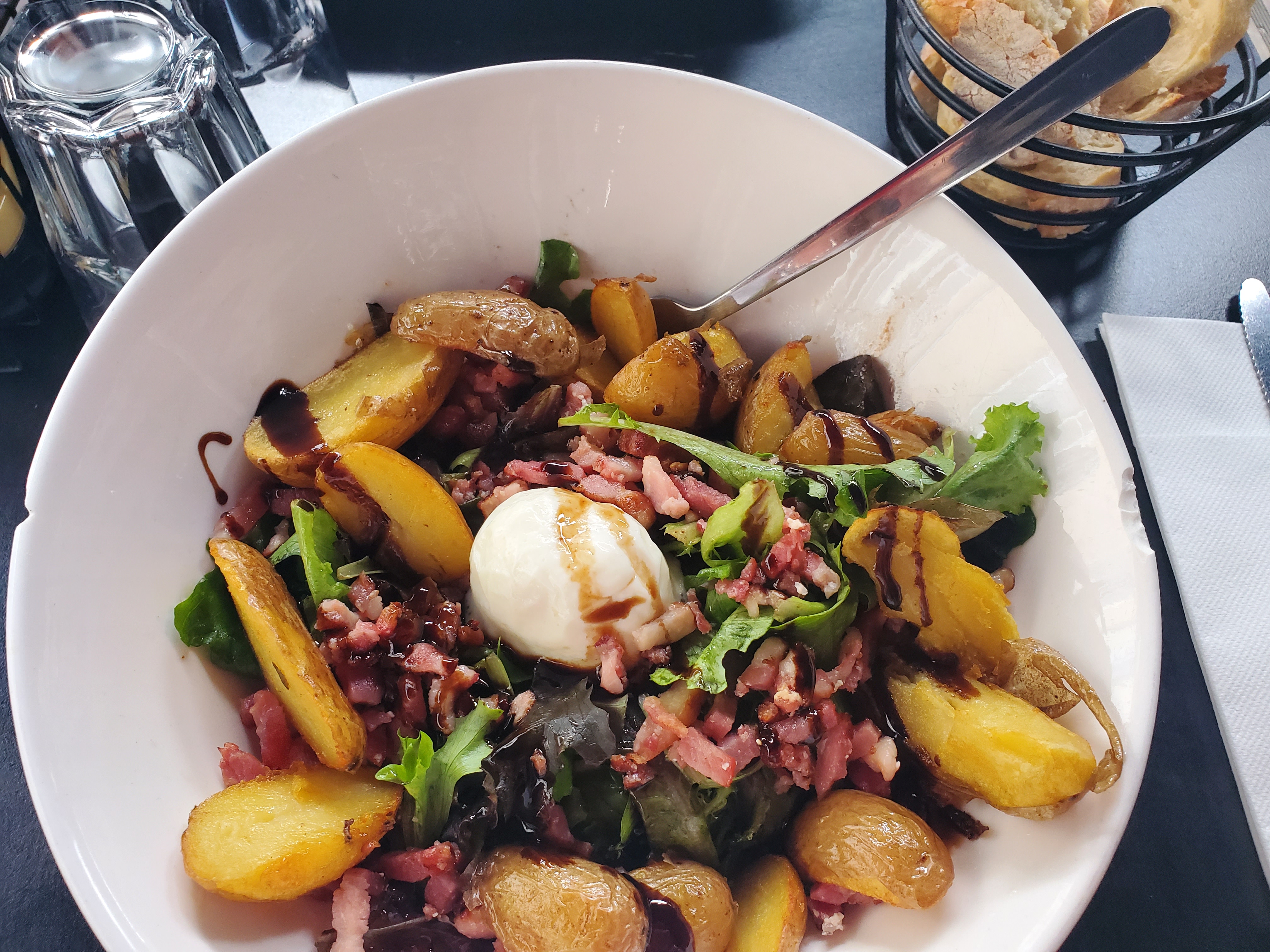 Dommage qu’on nous ait pas laissé finir notre planche d’apéro avant le repas. Assiette ébréchée. Accueil pas très chaleureux. Table mal placée, proche du bar, lieu passant et bruyant et surtout beaucoup de courant d’air…