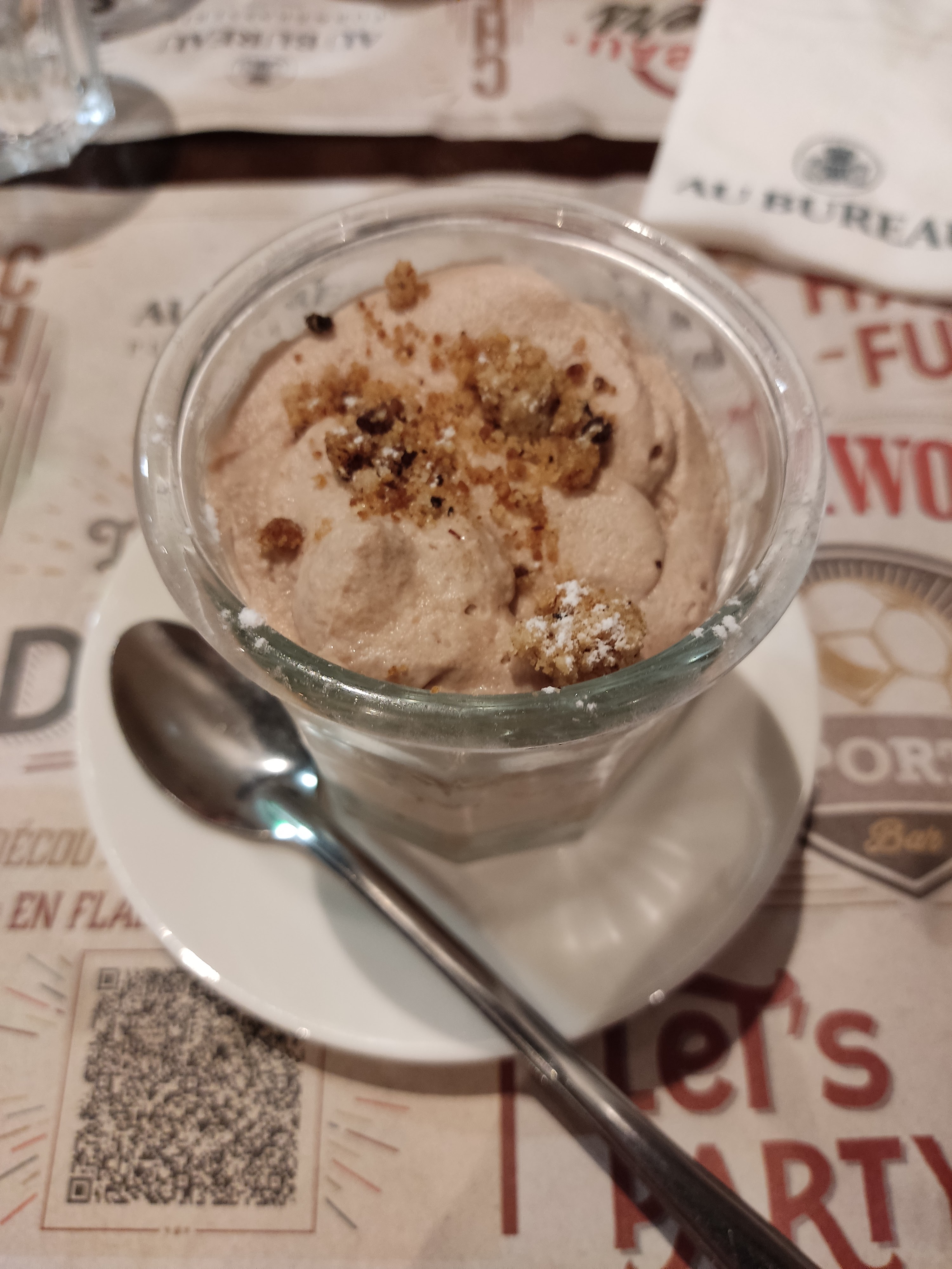Un repas simple mais plutôt gras malheureusement. Afin de ne pas rester sur ce ressenti, nous avons souhaité terminer sur une note gourmande en prenant un dessert. Nous avons été particulièrement déçus car ce qui semblait raffiné et original sur la carte s'est avéré écœurant et sans aucune délicatesse. Un verre empli grossièrement de crème et de pommes. Dommage...