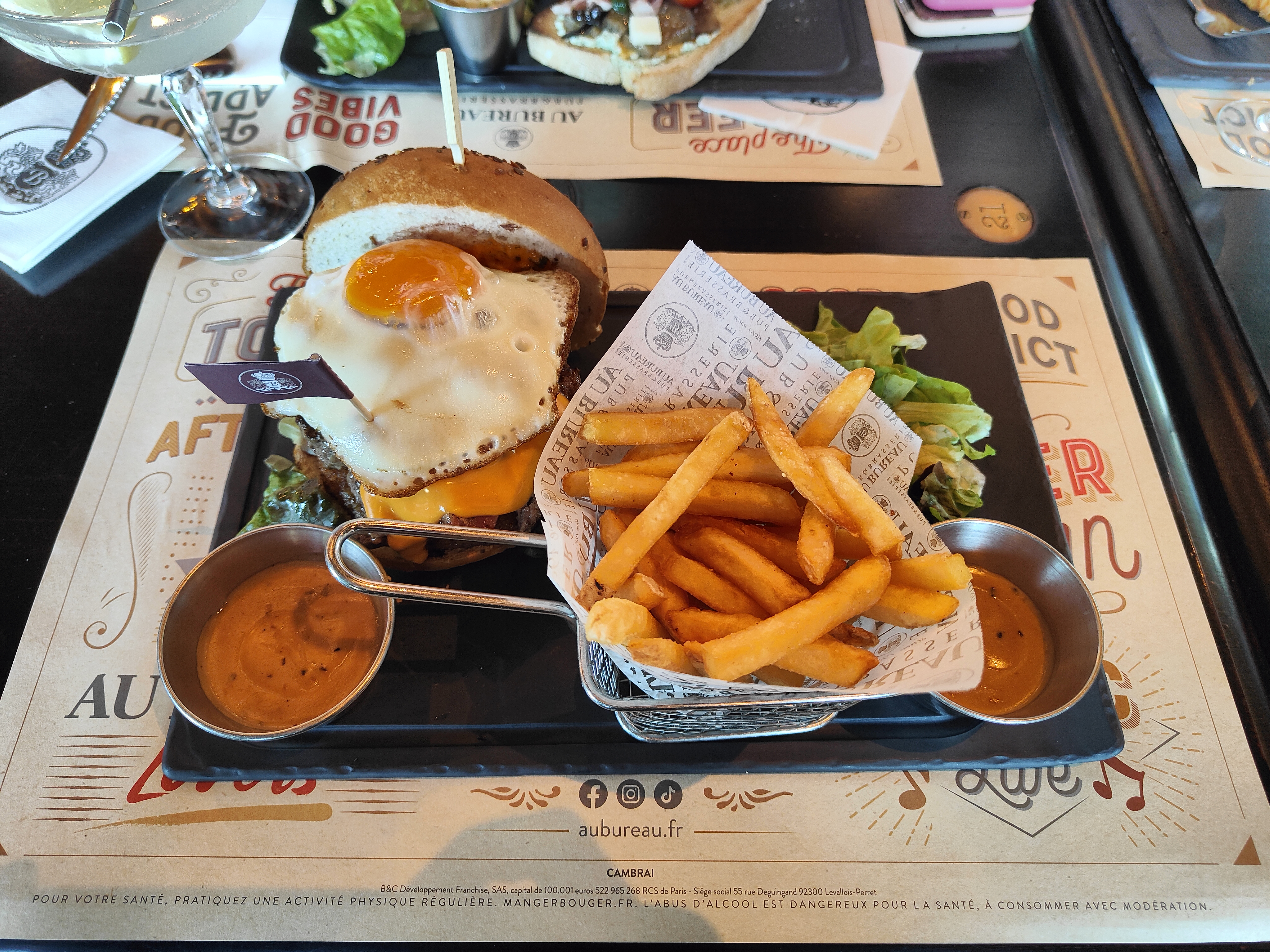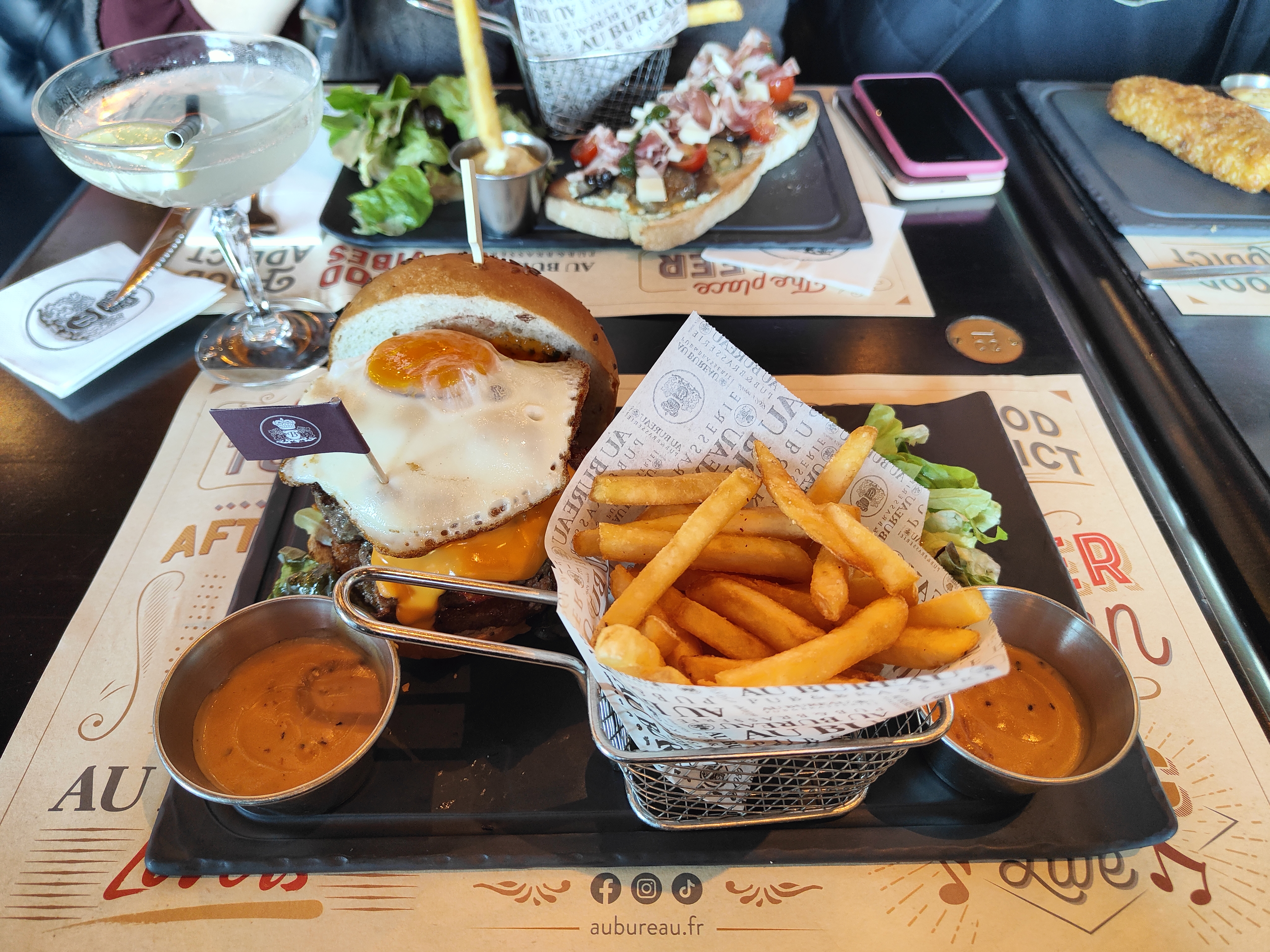 On a commandé des apéros qu'on esperait siroter tranquillement en discutant mais, à peine nos verres servis que nos plats sont arrivés dans la foulée 😒. Nous qui vous voulions commandé une bouteille de vin pour accompagner nos burgers, ben évidemment nous avons renoncé. Dommage pour le restaurant et tant mieux pour nos porte-monnaies va-t-on dire...