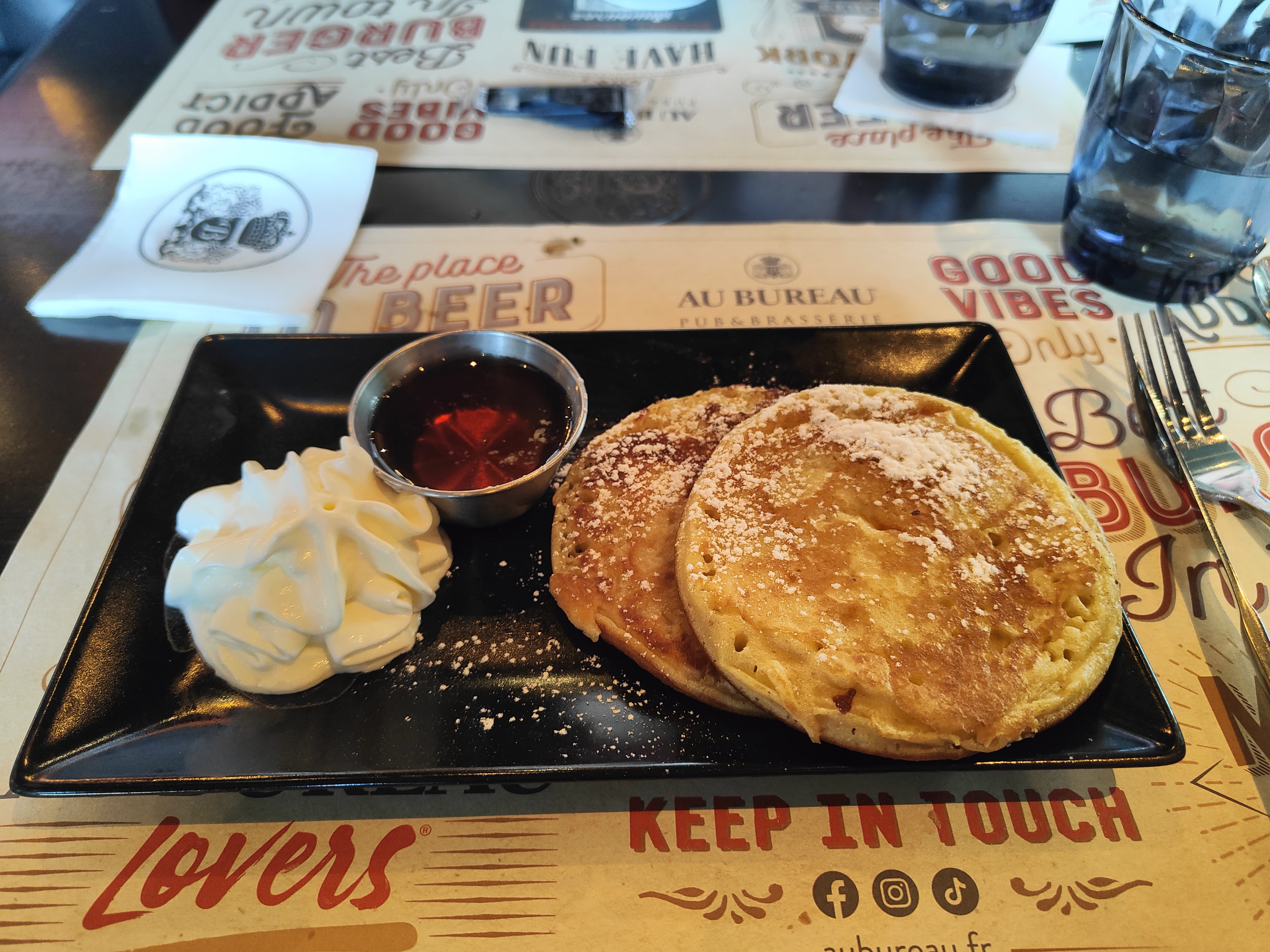 Serveurs toujours agréables et serviables à chaque fois qu'on y est allé. Nous avons eu généralement un bon accueil à chaque fois Les plats sont bons et généralement je ne suis pas déçue, c'est varié. On a pu manger là-bas : des platers, des Burgers, des salades, des croque-monsieur revisités, des viandes avec accompagnements et des desserts. On y a été de nombreuses fois en 8ans. Nôtre derrière fois date de juin avant nôtre déménagement. Je vous le recommande.