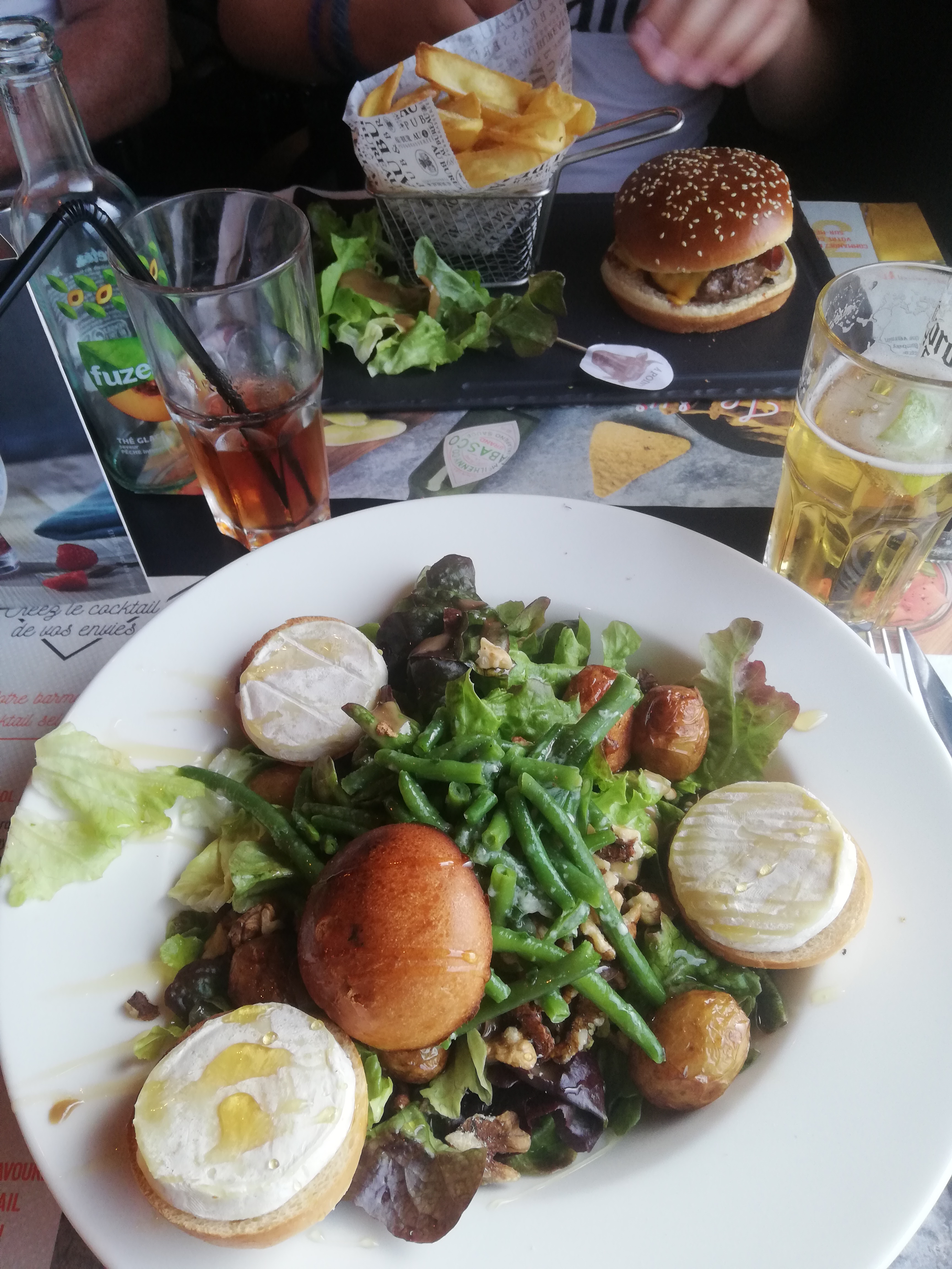 Bien que nous ayons été assez bien accueillis, nous avons attendu 20 min avant qu'ils trouvent une place. L'attente du repas depuis sa commande était aussi relativement longue. Les frites étaient fades et je n'avais pas de sauce dans ma salade...