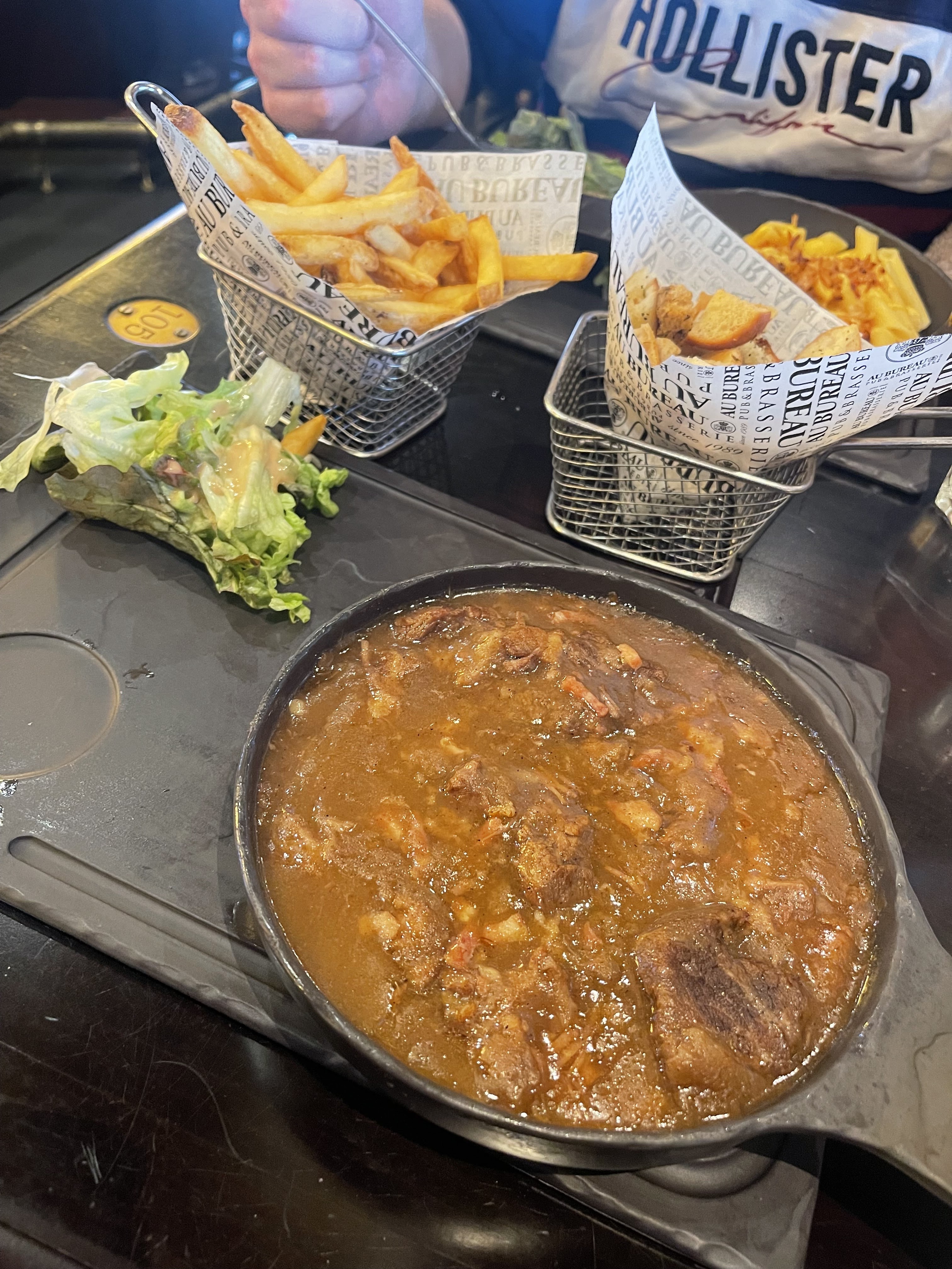 Magnifique Super accueil, lieux chaleureux et j'adore ce style pub irlandais, Qualité des produits ainsi que du service merci pour cette soirée super sympa Merci a toutes l'équipe Au Bureau de Flins et Merci a notre serveur Monsieur Quentin PS welch top et carbonade top