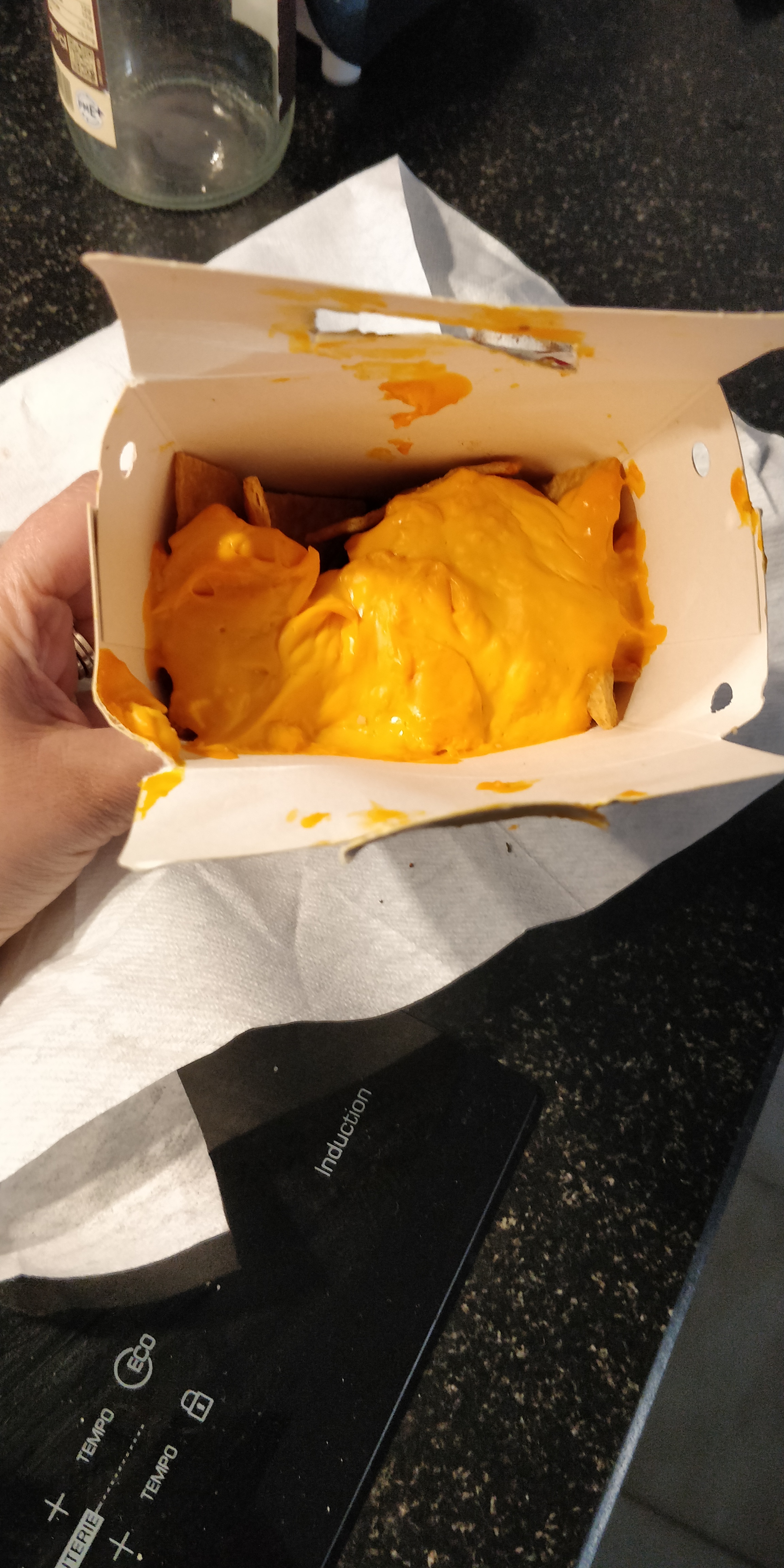 Service en salle très accueillant et très professionnel mais service en cuisine catastrophique : plus de 50 minutes pour une assiette de tapas qui s'avère ne pas être la bonne en arrivant. Après échange avec la serveuse en salle qui semble être une responsable, renvoi de l'assiette en cuisine en expliquant que les beignets de calamars ne peuvent pas être servis dans une assiette végétarienne et demande de faire du à emporter aux vues de l'heure....20 minutes après on m'apporte 2 boîtes en carton avec les excuses du restaurant. Malheureusement en vérifiant je m'aperçois que le cuistot a juste transféré l'assiette renvoyée en cuisine dans des boîtes ( calamars inclus évidemment) en y ajoutant 2 beignets de légumes et de pommes de terre. Les tortillas croustillantes de ma première assiette se sont retrouvées dans une autre boîte plutôt collante et ont été recouvertes de cheddar fondu... Je vous laisse imaginer la pâté molle et collante peu ragoûtante.(Cf:photo). Le reste de la box a fini à la poubelle et dans la gamelle du chien. Heureusement le serveur à la caisse a eu un geste commercial que j'ai vraiment apprécié. Bilan de la soirée 1h 30 de perdu pour un menu enfant et 1 soft puisqu'au final je n'ai pas pu manger. En bref une équipe en salle au petit soin pour la clientèle, qui fait tout pour couvrir la médiocrité du travail en cuisine de personne peu correctes, peu appliquées et très peu douées pour la cuisine.