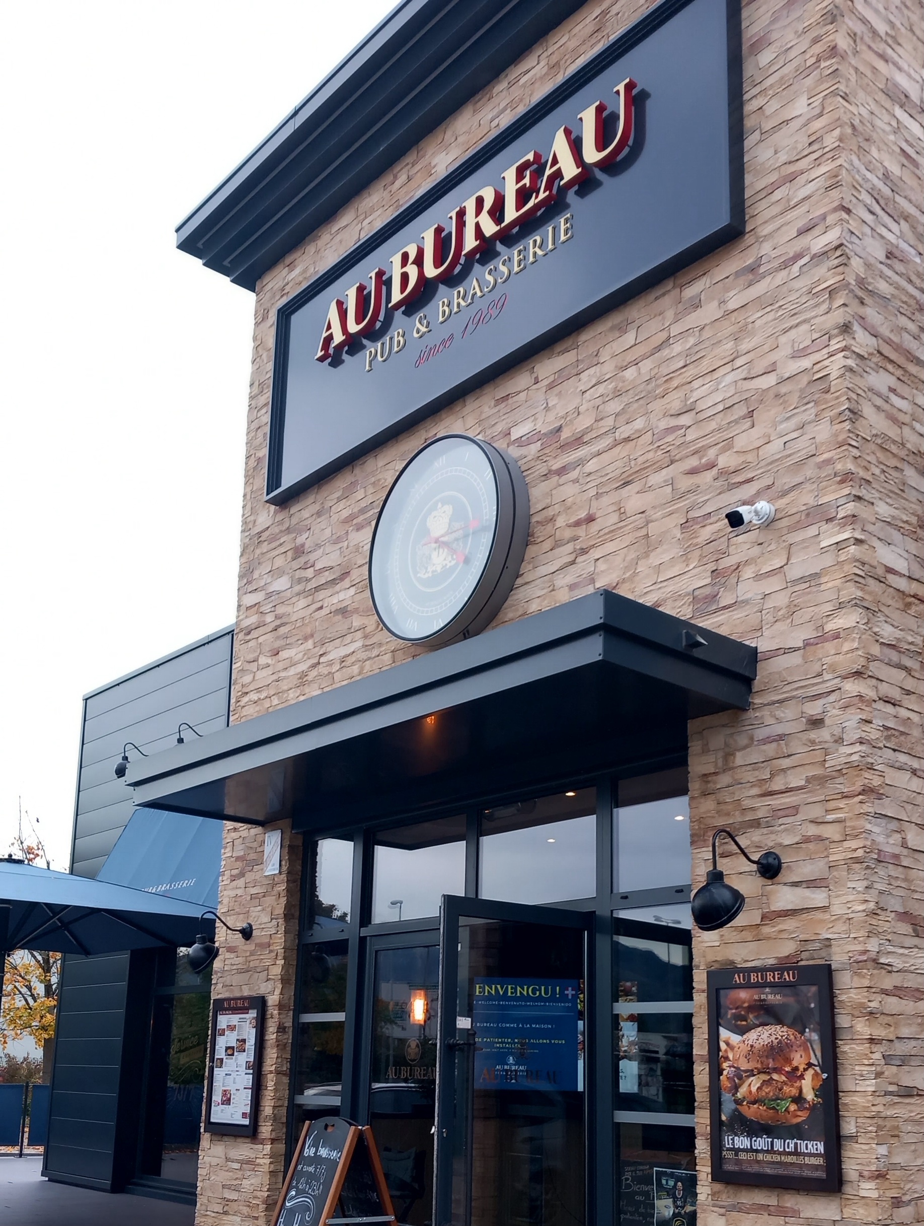 Music trop forte et qualité du son pourri.. Sans parler de la playlist Hard Rock.. Cote assiette la salade Cesar n’a de César que le nom.. Le menu enfant a 10 euros 18 frites avec 2 poulet pané servie vulgairement sans aucune présentation dans une assiette comme dans une cantine.. Très déçus de ce restaurant mais pas de la franchise Au bureau pour l’avoir déjà testé ailleurs..