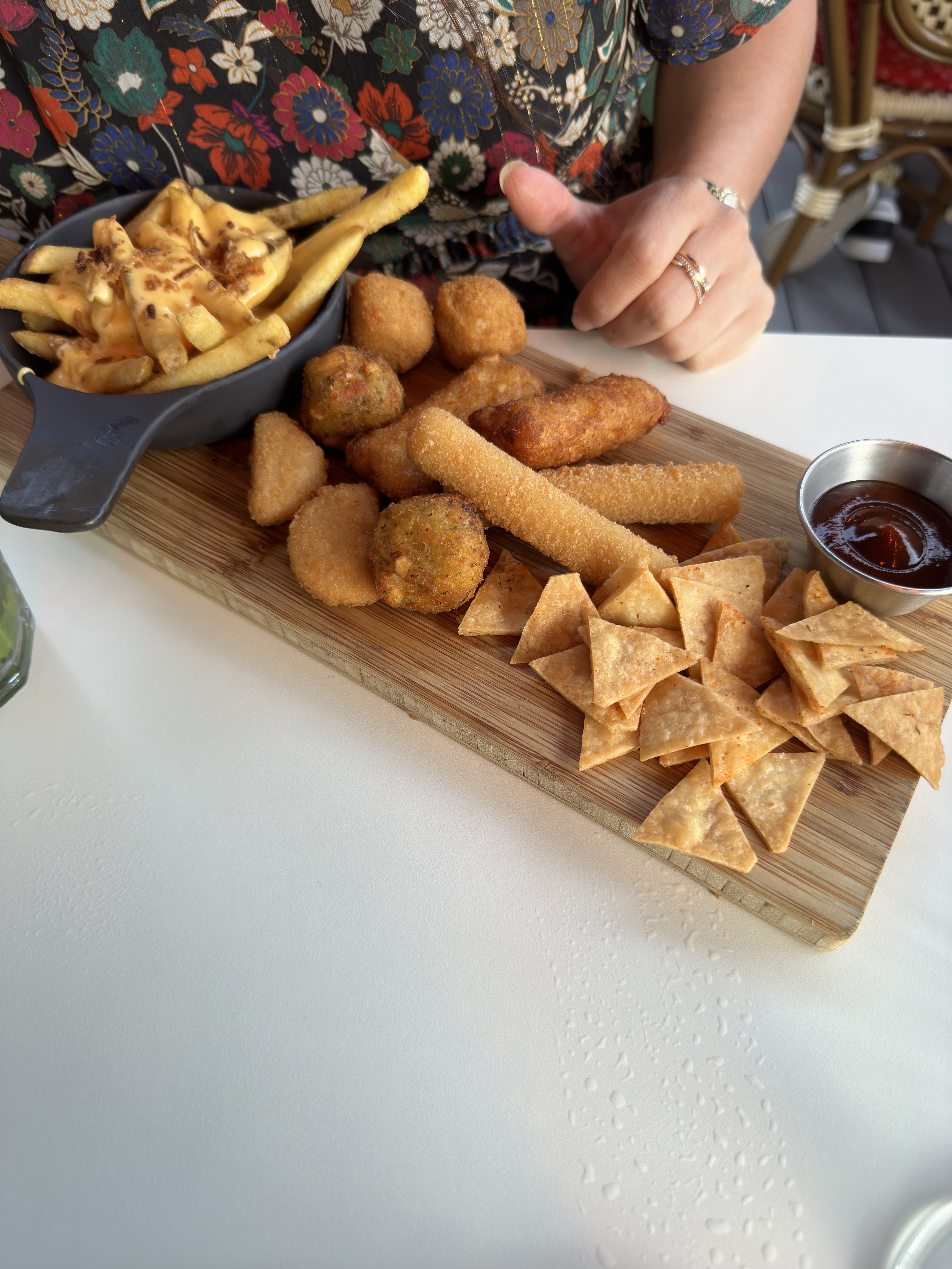 Superbe déco et personnel très sympa. Bon choix. Seul petit ajustement pour améliorer l’expérience: augmentez les quantités des planches apéritives qui sont vraiment riquiqui surtout le plateau de charcuterie/fromage qui ressemble plus à un plateau de salade verte.