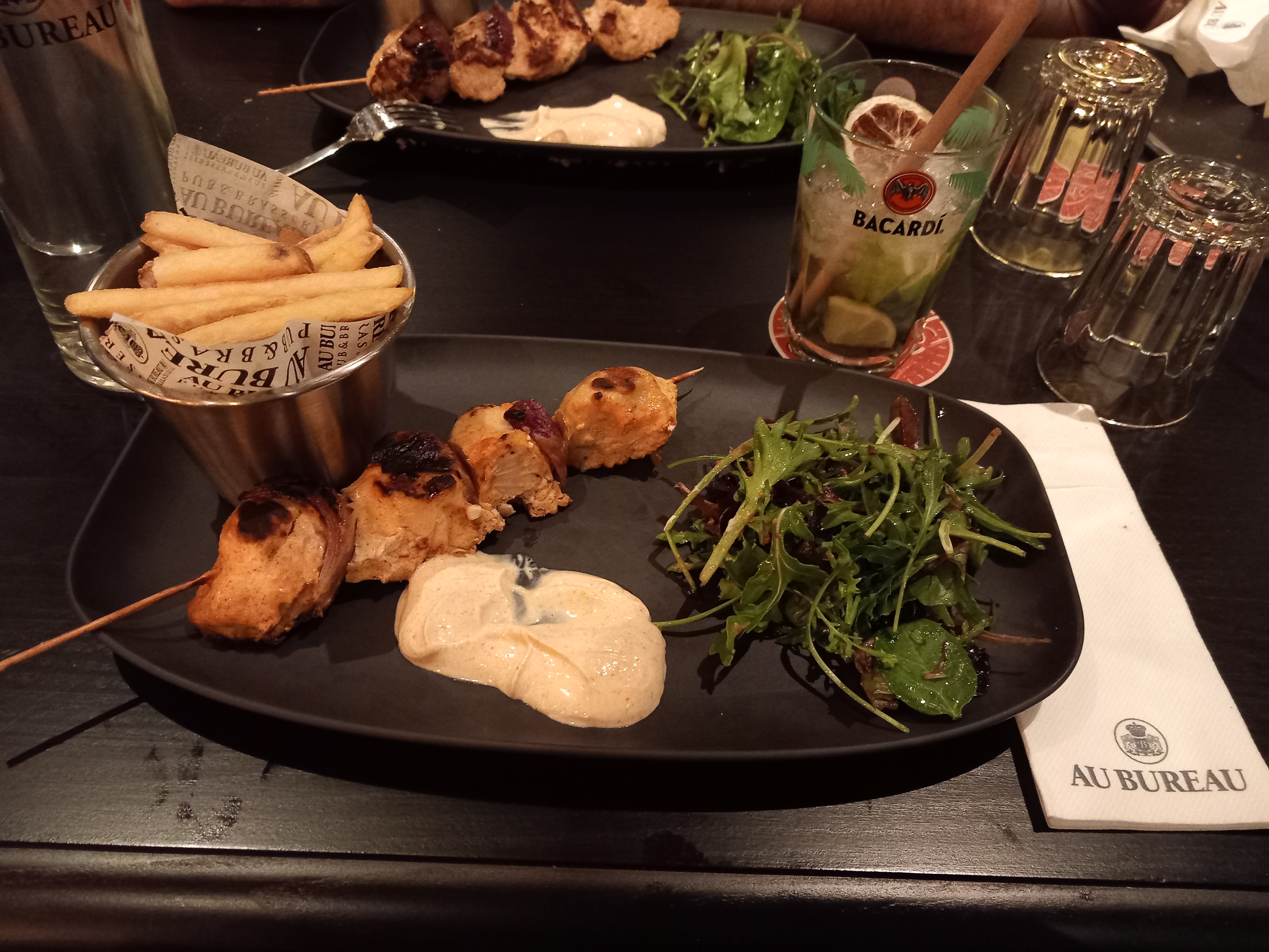 La chaîne Au bureau toujours au top 👍🏻 Une superbe cuisine, un service un peu rapide nous avons eu les plats avant les apéritifs. Un personnel accueillant et souriant, un joli cadre. Je recommande fortement ce restaurant et de réserver aussi ! *Attention, les horaires ne sont pas corrects il me semble, samedi soir 22h30 il n'accepte plus personne.*