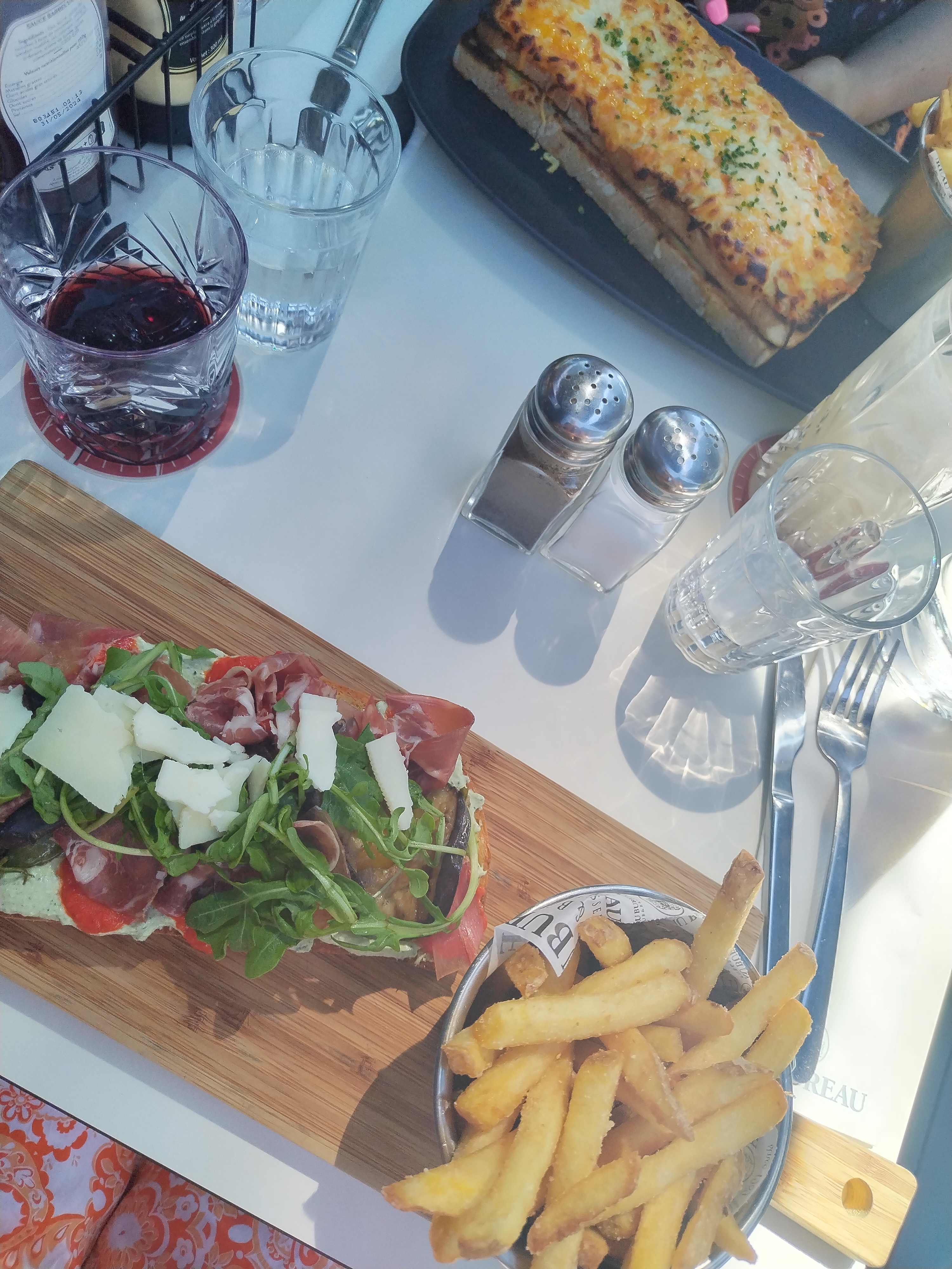 Arrivée à 14h35, possibilité de manger sur une carte réduite av plat de snacking et salade. Tartinade , servie av des frites. Très bon surtout quand on a faim ! Plat copieux même plus de place pour un dessert 🤣🤣