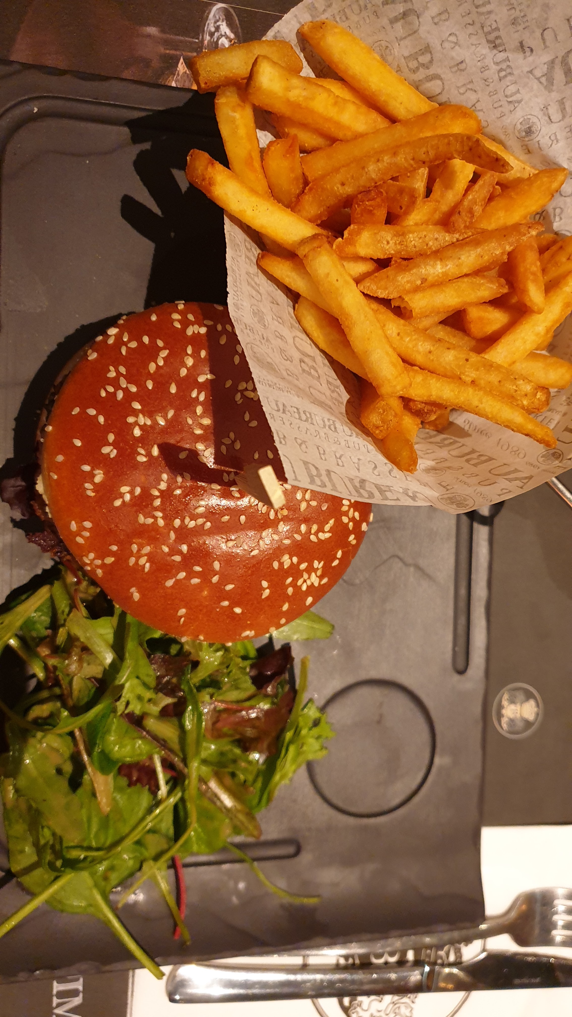 Burgers et frites excellentes !! Le repas et très copieux et très bons, on ne veut plus s’arrêter de manger. En revanche nous avons dû attendre 15 minutes avant qu’on vienne prendre notre commandes puis presque 30 minutes pour que notre repas soit servis. Attente trop longue à mon goût.