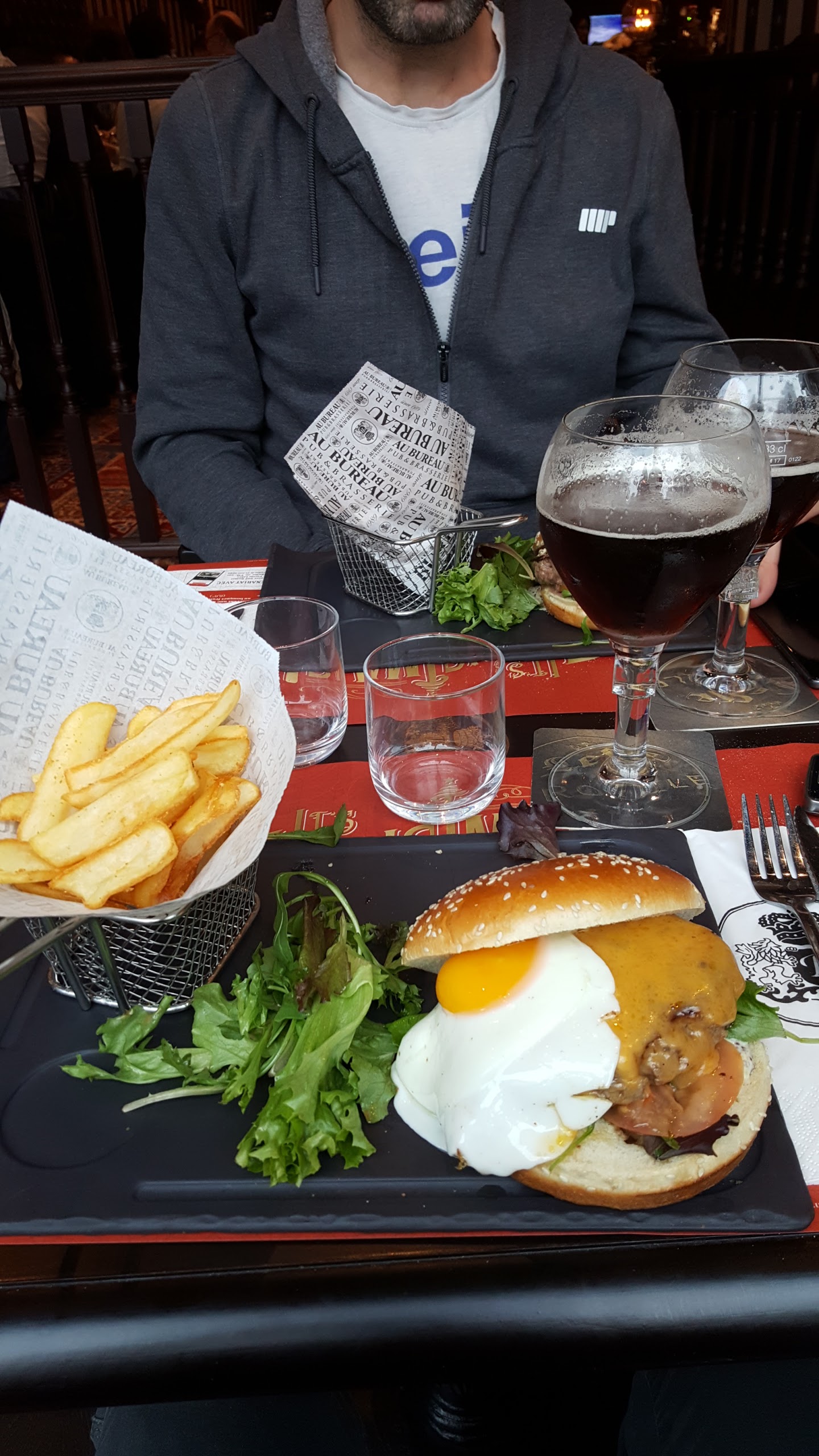 J’aime beaucoup la chaîne « au bureau » mais je déconseille celui-ci fortement. Aucune climatisation chaleur étouffante, obligé de sortir toutes les 5 minutes pour respirer. La prise de commande se fait uniquement lorsqu’on appelle un serveur. Nous avons attendu plus d’une heure pour nos plats entre la commande et le service. Menaçant de partir nous avons fini par être servi. Jamais vu un service aussi déplorable (3 pains et 1 carafe d’eau pour une table de 10) pour entendre en payant l’addition « ça fait parti du jeu d’attendre 1 heure un vendredi ». Je n’ai jamais critiqué les restaurants au bureau mais celui-ci est à fuir !!