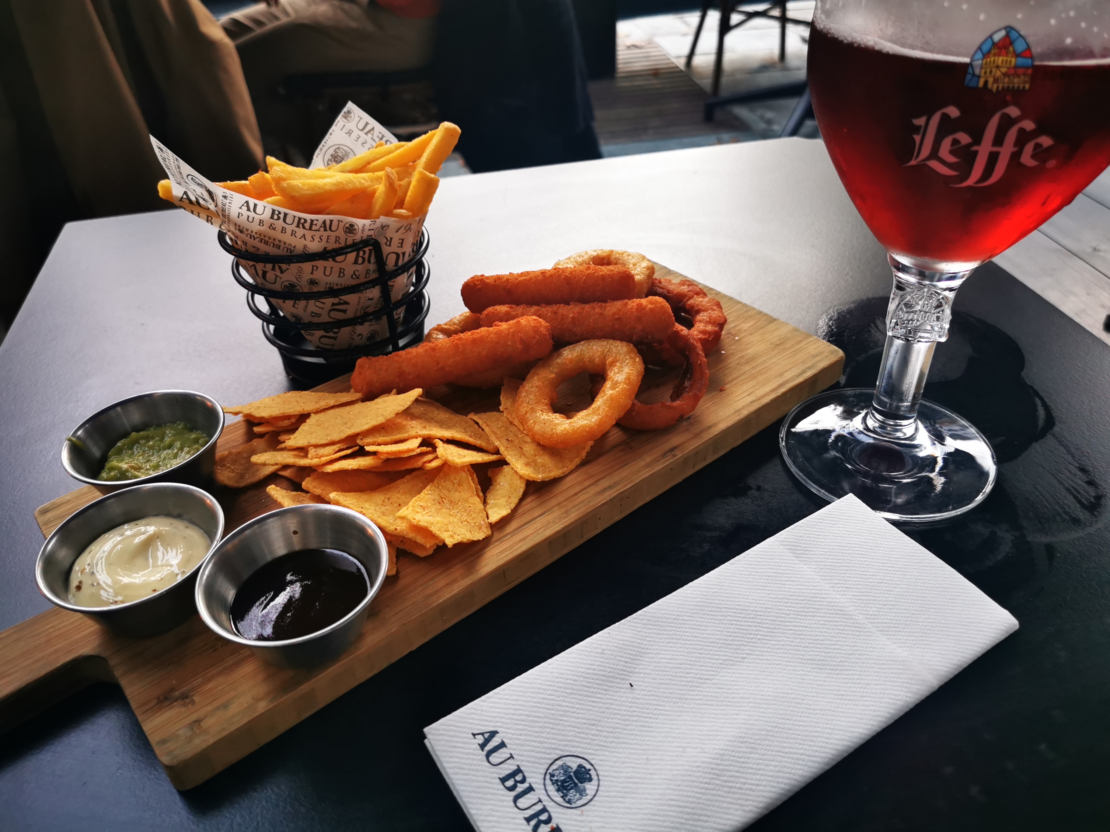 Toujours un plaisir de passer une soirée dans ce Au Bureau. Les prix sont dans la normale, et les burgers sont très bons ! En revanche il faudrait améliorer le paiement en caisse : on attend facilement 10/15 minutes à faire la queue pour payer sur l'unique caisse du bar