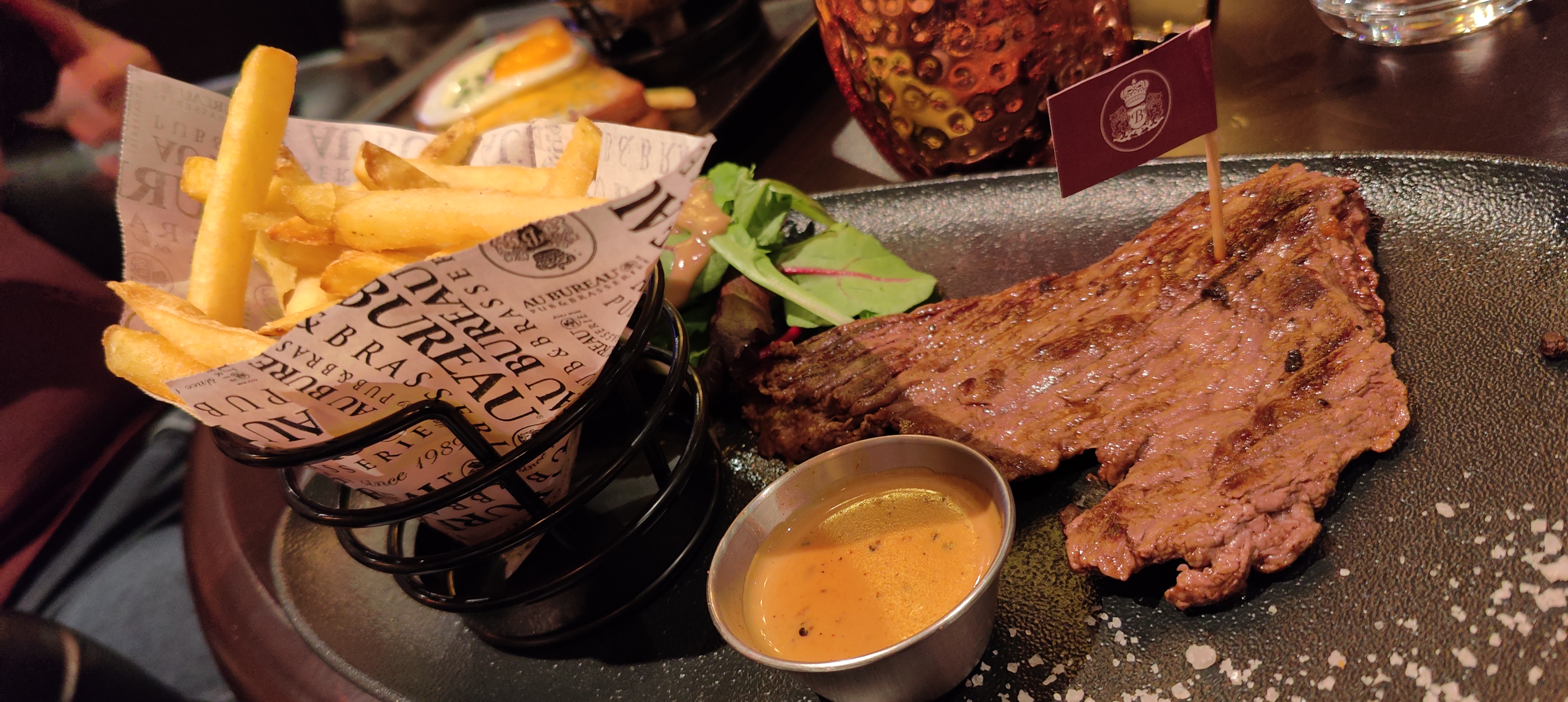 Première expérience réussie dans cette annexe de Au Bureau. Service très rapide (nous avions une séance de ciné), aimable et courtois. Le repas était bon. Je reviendrai.