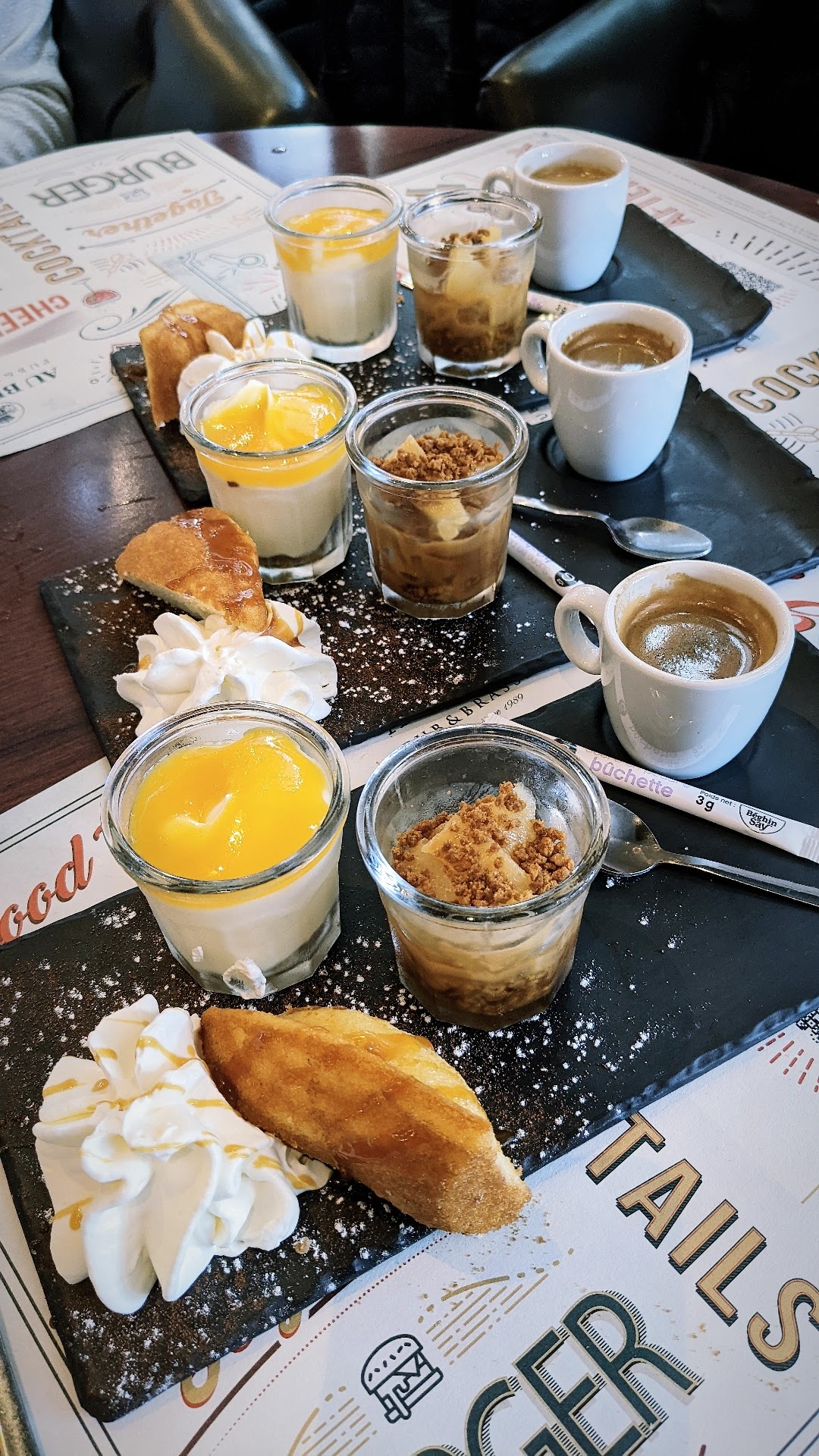 Vraiment déçue car à l apéro les doses sont infimes, les plats froids et les quantités moindres. Il y a que les hamburgers qui sont bons. L ambiance est très bruyante une horreur pas possible de parler sans crier. On y retournera pas. Heureusement les serveurs sont sympathiques